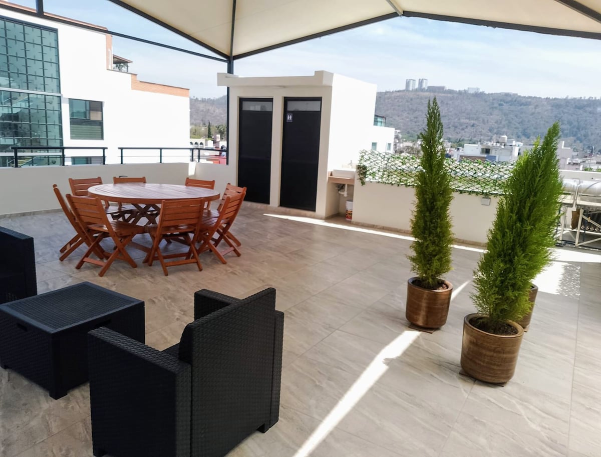 ✨Înconjoară-te de farmecul acestei locuințe și bucură-te de o ședere relaxată. Apropierea sa de centrul istoric al orașului Morelia (la 10 minute de mers pe jos) vă va permite să cunoașteți atracțiile orașului. Din grădina de pe acoperiș poți vedea apusurile de soare ale orașului de carieră roz. ✨ Avem: * supraveghere non-stop * Ședere la etajul al treilea * Parcare gratuită în garaj automat și fără pilot *2 băi complete *2 camere *O bucătărie completă * Living confortabil, * Fibră optică WiFi, Netflix și Disney