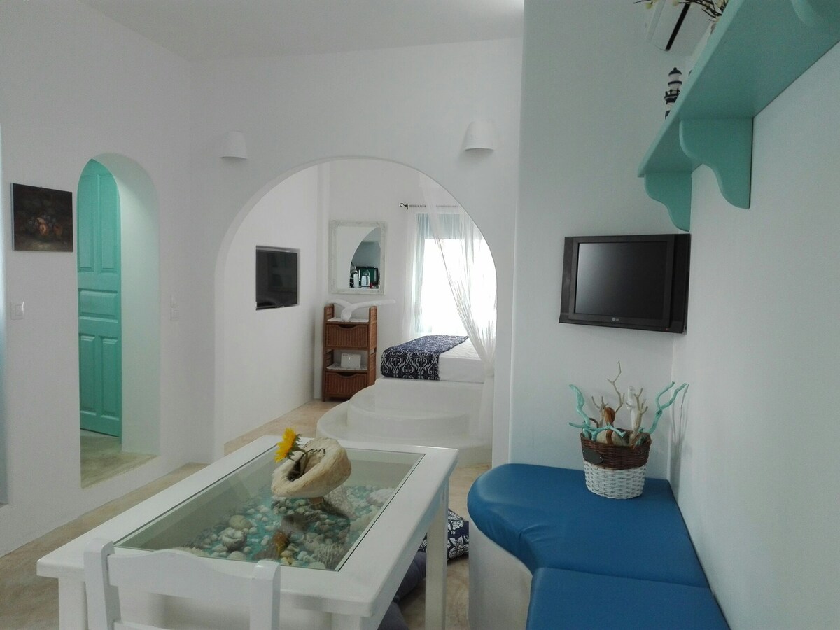 Just steps from the sea, you can swim anytime in crystal-clear waters. Enjoy beautiful sunrise and harbor views, all from a central location just minutes from cafés, restaurants, and the harbor. The studio is bright, minimal, and thoughtfully designed, ideal for couples or solo travelers seeking a calm and authentic island stay.