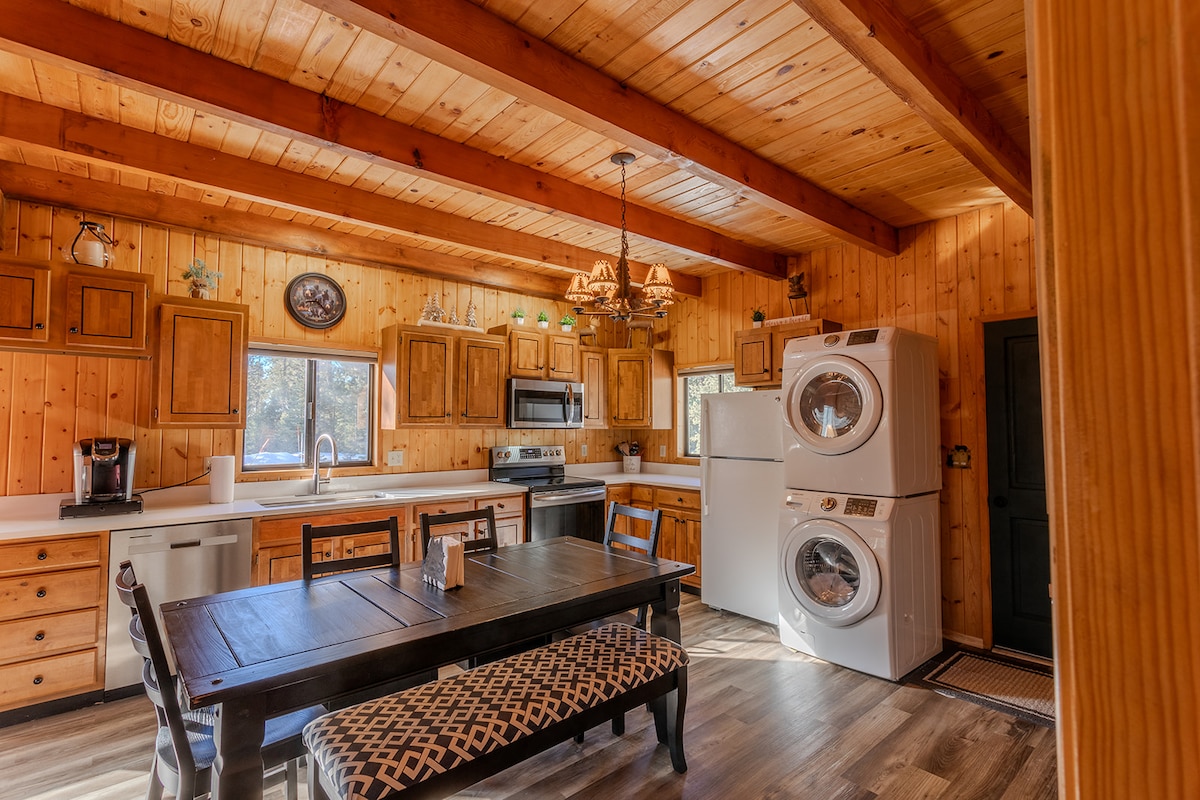 Howdy partner! Live the cowboy dream at our rustic A-frame log cabin between Zion & Bryce Canyon National Parks! Sleeps 8 🤠🌵 Enjoy world class hiking, biking, horseback riding, and cliff jumping within driving distance! Then come home and relax at the cabin. Horses to greet across the street, stargazing at night, and all the sounds and smells of the frontier. Authentic country experience with modern conveniences: Fiber internet. Clean, full bathrooms. Multiple smart TVs.