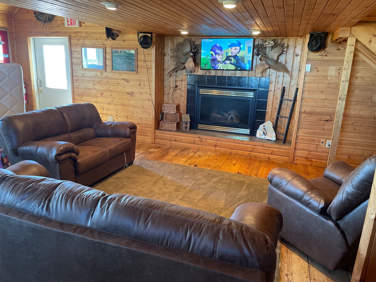 Get away from it all when you stay under the stars. Open concept design with open balcony sleep area. Fireplace for cold nights. Located out in the country in a hunters paradise. Food plots out the front door. Deer and pheasants frequently sighted in the yard. Newly finished bathroom with shower. Kitchen is furnished with everything but a full oven, hot plate available as well as grill, microwave, pizza oven, and an air fryer/countertop oven.