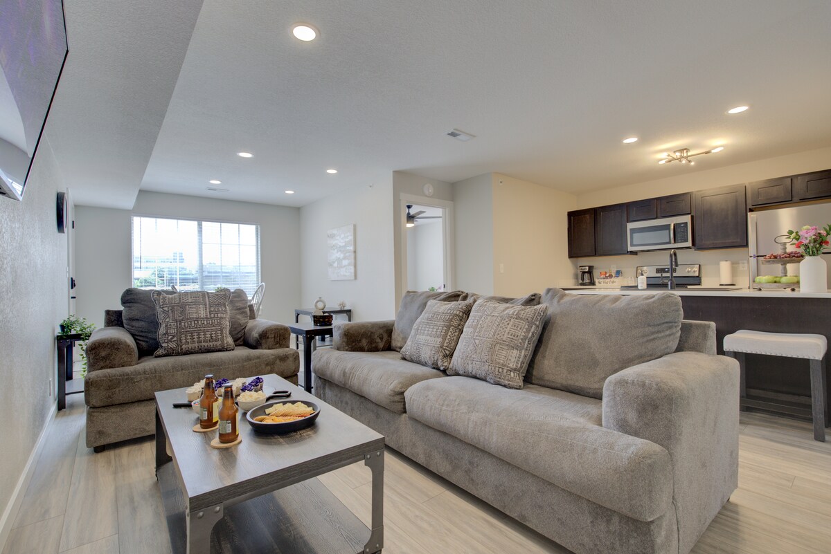 Evadează în frumosul Kansas rural cu acest apartament spațios cu 2 dormitoare, 2 băi. Dormitorul principal are un pat matrimonial și o baie cu duș. Al doilea dormitor are un pat matrimonial cu baie proprie și cadă cu jet. O bucătărie modernă, un bar și 2 zone de luat masa fac din acest loc locul perfect pentru a te aduna împreună cu familia sau prietenii. Un birou și Wi-Fi de mare viteză îți permit să lucrezi confortabil din mansardă. Zona exterioară are o terasă, mobilier de terasă și parcare acoperită.
