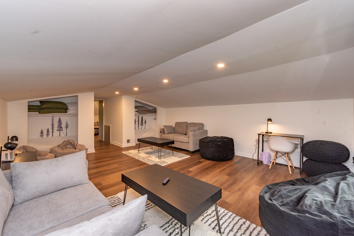 Lake Forest Lodge este o locuință spațioasă de lux din bușteni, cu farmec rustic modern. 5Bdrms/3.5Ba, un refugiu liniștit și sofisticat. Apartamentul principal de la etajul principal se mândrește cu un pat matrimonial și o baie privată completă de lux. Șemineu cu lemne în zona de living grandioasă, mobilier confortabil și concept deschis care conectează spațiul de locuit și bucătăria complet echipată. Camera însorită oferă priveliști panoramice ale peisajului. Subsol finisat cu zonă de foosball și bar. Mansarda are o canapea extensibilă, TV, birou și jocuri. Wi-Fi Starlink!