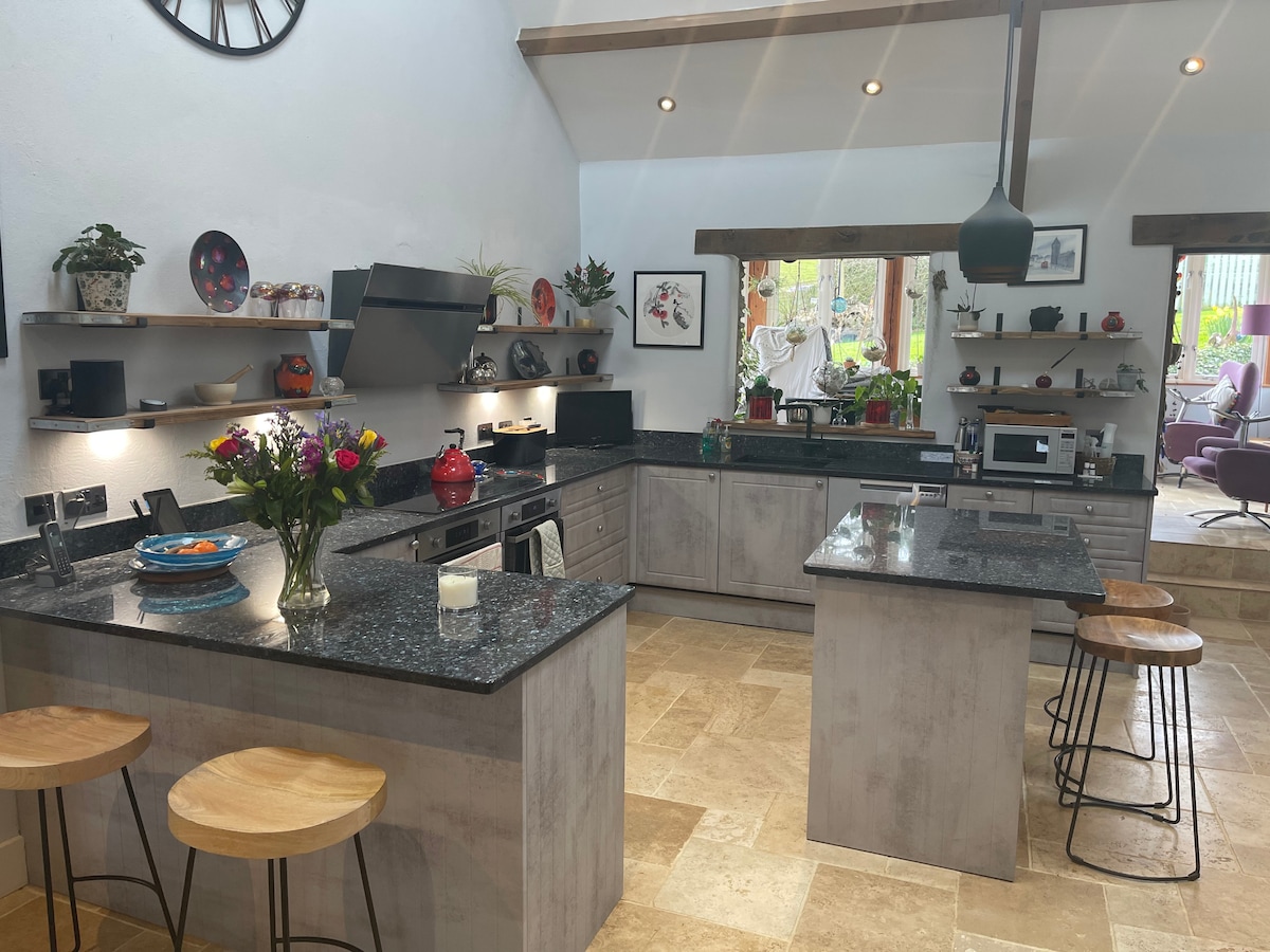 Cabana noastră de vacanță de lux, prietenoasă cu câinii, este o fermă din secolul al XVII-lea, decorată în stil rustic, cu o notă modernă. Cu un arzător de lemn imens și o cadă cu hidromasaj frumoasă*, vei fi cu siguranță confortabil. La doar 2 m de plajă și în țara ideală de mers pe jos, câinii sunt bineveniți. Cele patru dormitoare (două cu baie proprie) oferă cazare amplă, cu un living spațios și confortabil și o sufragerie generoasă. Wi-Fi complet cu fibră optică, cu foosball și darts în clădire. *utilizarea căzii cu hidromasaj necesită semnarea unei declinări a responsabilității.