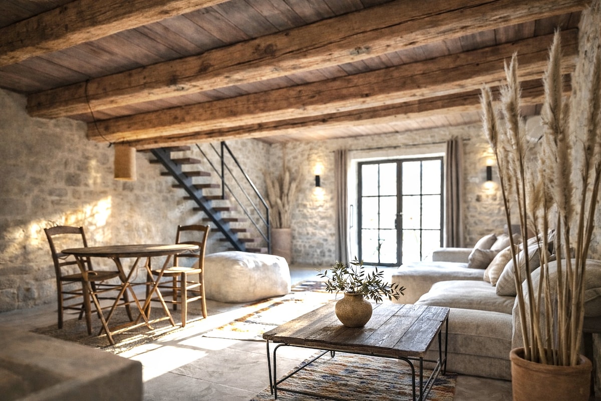 This 19th-C. silk farmhouse between Bonnieux's lanes and vineyards offers authentic Provence. Wake to espresso aromas on your vine-view terrace, then stroll for warm croissants as bells chime. Historic stone walls and oak beams blend with a farmhouse kitchen and French linens. Days bring market visits, winery explorations, and sunset wines under the stars. Spring cherry blossoms and summer lavender fields complete the seasonal charm. Just 5 minutes from village bakeries yet peacefully secluded.