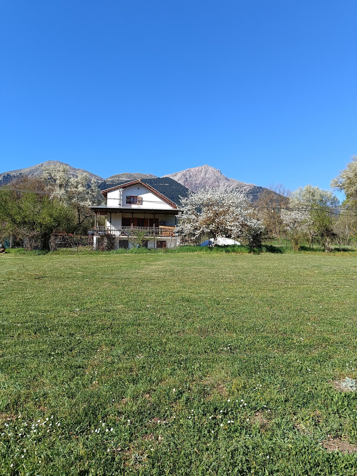 Casa este situată în centrul frumosului sat nou, foarte aproape de piața satului și de Country Club Hotel & Suites, într-un cadru de vis, la poalele dealului Helidona, cu vedere spre Kaliakouda și Velouchi. Construită în stil tradițional din piatră și lemn. Este format din două apartamente independente, unul la parter și unul la etaj. Apartamentul de la parter are 75 mp și este dotat cu living, bucătărie, dormitor și baie.