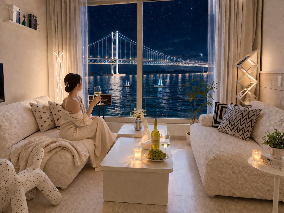 [광안 시크릿 오션룸] “눈앞에 펼쳐지는 바다, 감성 속에 머무르다.” 탁 트인 창 너머로 광안대교와 바다가 펼쳐지는 오션뷰 감성 숙소입니다 📍자연광이 가득 들어오는 포근한 공간에서, 음악과 함께 여유로운 시간을 즐겨보세요. 당신만의 부산 여행을 완성해줄 공간입니다. 연인·가족·우정 여행에 딱! 광안대교 Full Ocean View 📍광안리 해수욕장 바로 앞 감탄을 자아내는 광안대교 뷰를 침실과 거실에서 동시에 누려보세요. “눈앞에 펼쳐지는 광안대교 뷰, 그리고 아늑한 휴식! 프라이빗한 오션뷰 감성 숙소에서 특별한 하루를 경험해보세요. ✔️전면 통창 바다 전망 ✔️감성 가득한 인테리어 & 마샬 스피커 ✔ 신축 아파트 광안리에서 가장 인기 있는 1등 인기숙소 ✔ 탁 트인 오션뷰 + 해운대 시티뷰 + 광안대교뷰 ✔ 감성 가득 인테리어 & 프리미엄 어메니티 ✔ 밀락더마켓 활어센터 도보 거리 📍밤낮으로 다른 매력을 선사하는 최고의 전망. 사랑하는 사람들과 인생샷을 남겨보세요.
