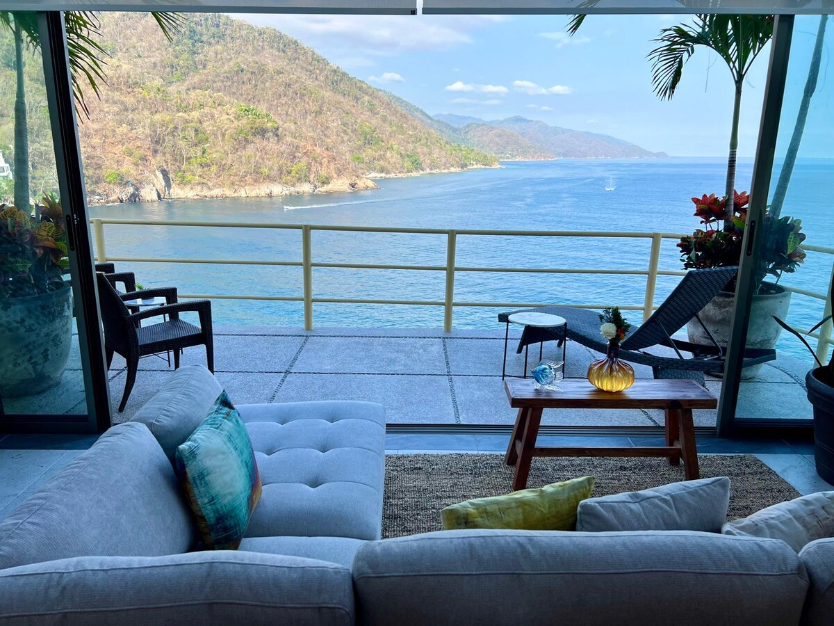 Bine ai venit în apartamentul nostru uimitor. Un adevărat paradis al frumuseții și liniștii, cocoțat chiar pe stâncile uluitoarei coaste de sud a Puerto Vallarta. În momentul în care pășești în holul complexului, vei fi imediat captivat de priveliștile panoramice asupra oceanului. 🌊⛵🏝️🌅 Lasă-te să adormi și te trezești la sunetul liniștitor al valurilor chiar sub tine. Bucură-te de piscina infinită de pe acoperiș pentru priveliști de neuitat, unice în viață. Unitatea noastră este orientată spre sud, cu un balcon înfășurat.
