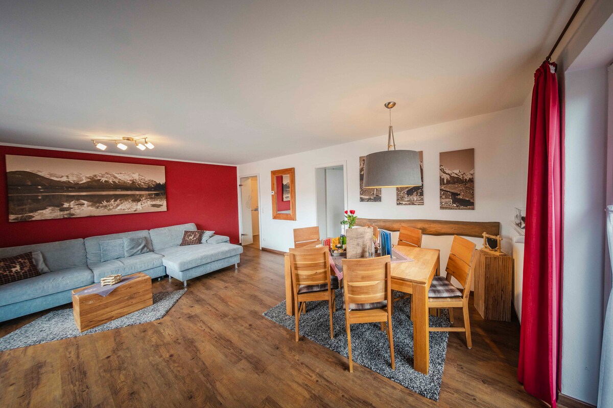 Apartamentul orientat spre sud oferă priveliști minunate asupra lumii alpine din Karwendel și Wetterstein. Garsoniera a fost recent renovată și mobilată. Pot dormi până la 4 persoane, dar este ideal pentru două sau trei persoane. Apartamentul are aproape 40 m2 de spațiu de locuit foarte curat: sufragerie/living (cu chicinetă spațioasă, complet utilată), dormitor (cu pat dublu larg și saltele noi), baie privată în timpul zilei, balcon orientat spre sud, parcare privată.
