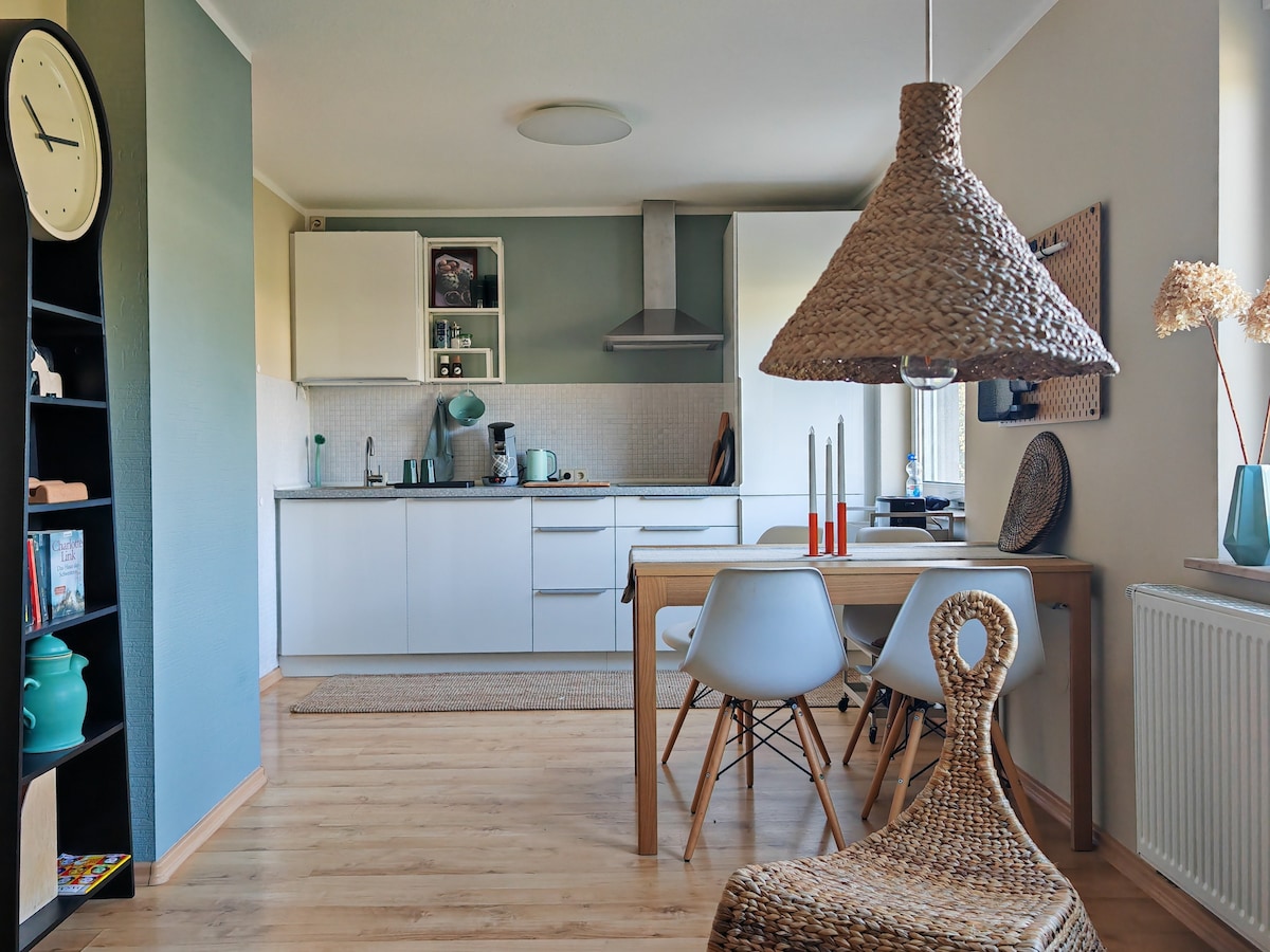 Sosește și simte-te bine... acesta este motto-ul nostru și îți urăm! Apartamentul nostru este situat la primul etaj al clădirii noastre rezidențiale. Este inundată de lumină și permite o vedere frumoasă pe tot parcursul zonei înconjurătoare. Constă dintr-un dormitor, cu pat dublu și canapea extensibilă, un living cu bucătărie cu o canapea de colț și o baie spațioasă, modernă, cu duș mare. Dacă este necesar, se poate rezerva un al doilea dormitor.