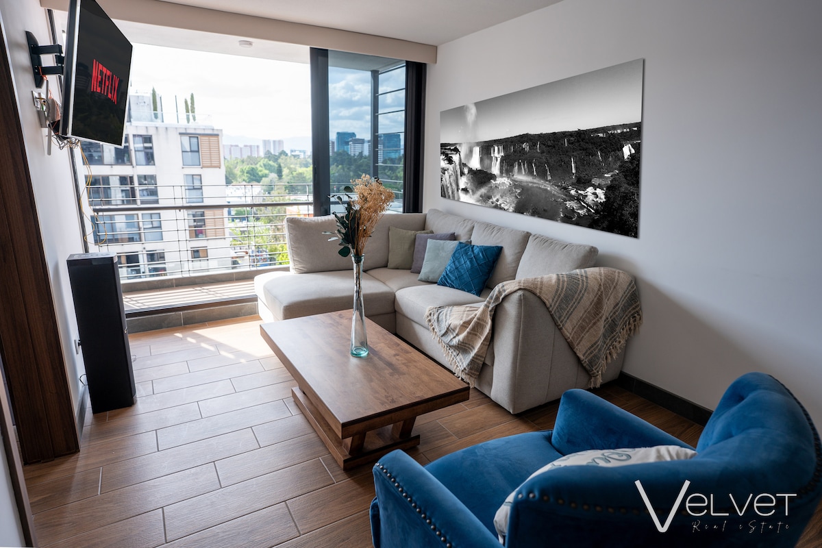 Bucură-te de o experiență elegantă în acest apartament frumos, într-una dintre cele mai bune clădiri din zona 13 a orașului GT, la câțiva metri de Aeroportul Internațional La Aurora. Are o varietate de dotări și magazine în interiorul clădirii, astfel încât să te poți bucura de șederea ta în cel mai bun mod. Cu parcare gratuită în interiorul imobilului. Diverse dotări, cum ar fi jacuzzi, sală de gimnastică, sală de gimnastică, zonă de coworking, sală de ședințe, sală de observare a avionului, cameră de trabucuri etc.