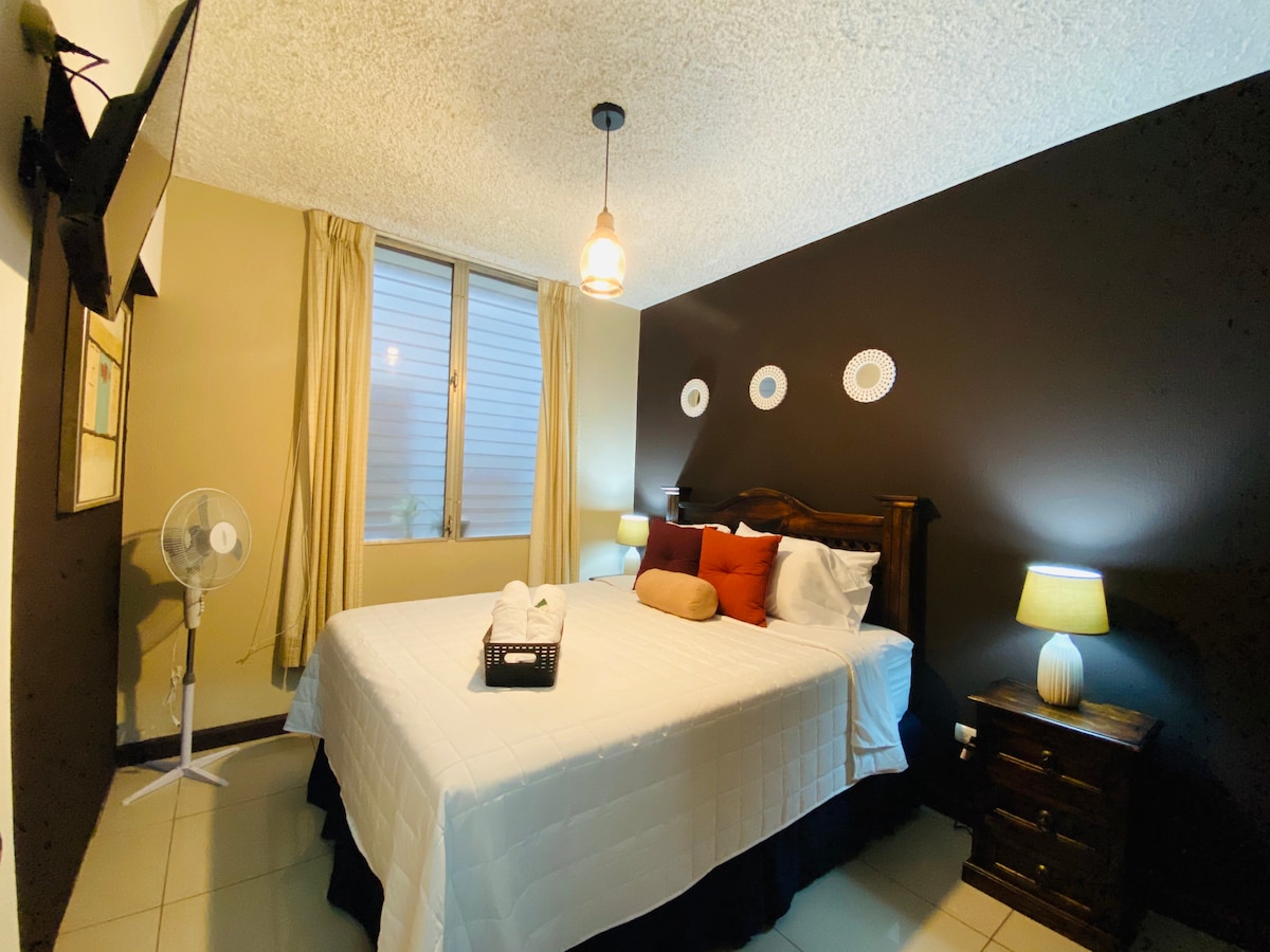 Mansardă confortabilă, în zonă rezidențială cu acces independent, zonă de parcare pentru un vehicul de tip sedan; Zonă de dormit pentru trei persoane (un pat dublu și un pat de o persoană); living spațios, sufragerie și ustensile de bucătărie și baterie de bucătărie completă; tacâmuri; Percolator pentru trei cești, alimentare cu filtru de cafea. 300 de metri de aeroportul internațional La Aurora din La Aurora, aproape de închirierea de mașini și zonele de vânzare cu amănuntul. Iluminare și ventilație naturală.