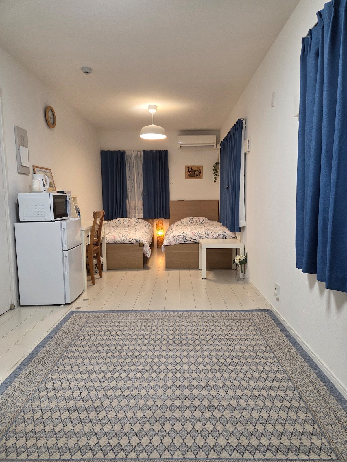 Bucură-te de o ședere privată într-o cazare autorizată, lângă un Lawson non-stop. Doar 30 de minute cu trenul până la gara Tokyo. Biciclete gratuite, Wi-Fi, Amazon TV și un taxi gratuit de la stația Kawaguchi în ziua de check-in. Acest prefabricat popular nu are bucătărie, așa că probabil vei mânca în oraș sau vei folosi mese gata preparate. Camera este simplă, cu două paturi și două birouri mici, fără facilități suplimentare. Seara, relaxează-te cu băutura ta preferată.