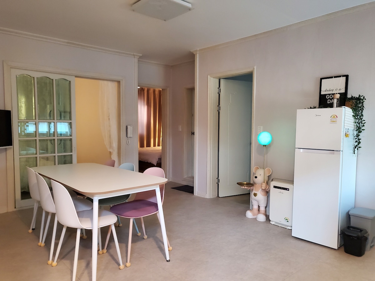 - Acest spațiu este situat la etajul al doilea al clădirii. Există două dormitoare, un living și o baie. Există un magazin universal Hwangbang GS la 1 minut distanță. - Aceasta este o casă spațioasă și curată, cu două etaje. - Livingul este suficient de spațios pentru ca prietenii și familia să se bucure și există, de asemenea, o masă pentru 3 persoane. - Cazarea este un living cu două camere și o masă și o bucătărie. Există boluri și oale în bucătărie pentru gătit, precum și un cuptor cu microunde și aragaz cu orez. - Camera mare are două paturi de o persoană și o cameră mică cu un pat, așa că cred că va fi un loc mai confortabil de odihnă. - Este un spațiu plăcut, cu un televizor mare în living, un difuzor cu stele și un aparat de aer condiționat în fiecare spațiu. - Pereții cazării sunt decorați cu picturi, deci sunt decorați ca spațiu de galerie. - Satul Hanok este la 10 minute distanță și este situat la 5 minute de noul centru al orașului și există Aleea Seosin-dong Makgeolli și Gamaekjip în jurul casei. - Parcarea este disponibilă în fața și în apropierea casei.