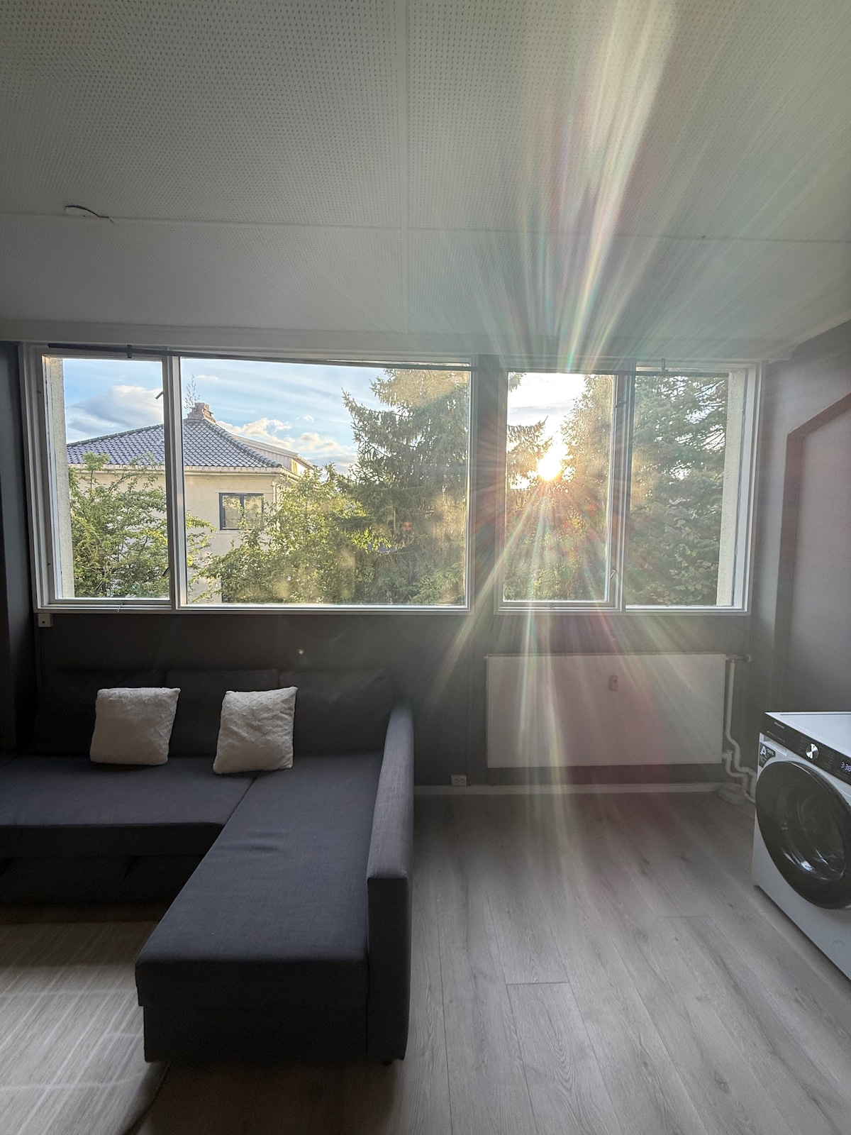Bine ai venit la punctul de plecare perfect pentru șederea ta în Hønefoss! Apartamentul se află la etajul al doilea al vilei noastre fermecătoare, care se află într-o fundătură liniștită. Aici trăiești liniștit, dar în același timp cu imediata apropiere a magazinelor, cafenelelor și restaurantelor orașului. Proprietatea are o grădină luxuriantă și ești foarte binevenit să folosești foișorul nostru confortabil – un loc perfect pentru mese Apartamentul este complet echipat și oferim lenjerie de pat și prosoape – astfel încât totul este gata până când ajungi