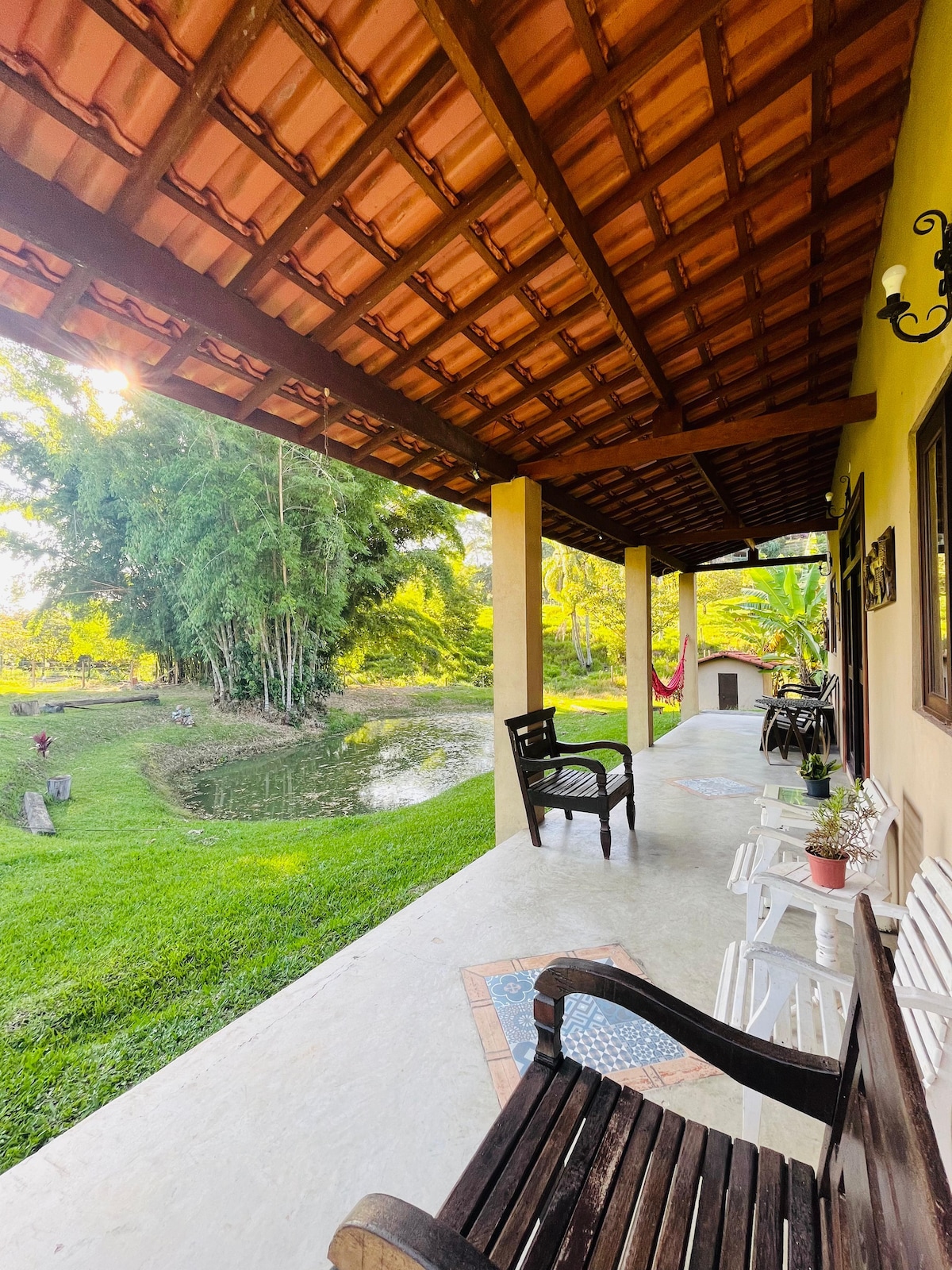 Perfect pentru relaxare cu familia, prietenii 🏡 Capacitate pentru până la 15 oaspeți 🛁 3 băi și 1 baie 🚗 6 locuri DE parcare 🏊♀️ Piscină mare (5x13m și 1,60m adâncime) 🧖♀️Saună uscată 📶 Wi-Fi și Netflix Bucătărie echipată, cu 2 filtre de apă. 🥩Grătar Lenjerie de pat (calitate premium) Ventilatoare în dormitoare și în living 🐟Lac de pescuit sportiv Grădină cu pomi fructiferi (pitanga, acerola etc.) Mediu ideal pentru odihnă și conexiune cu natura.