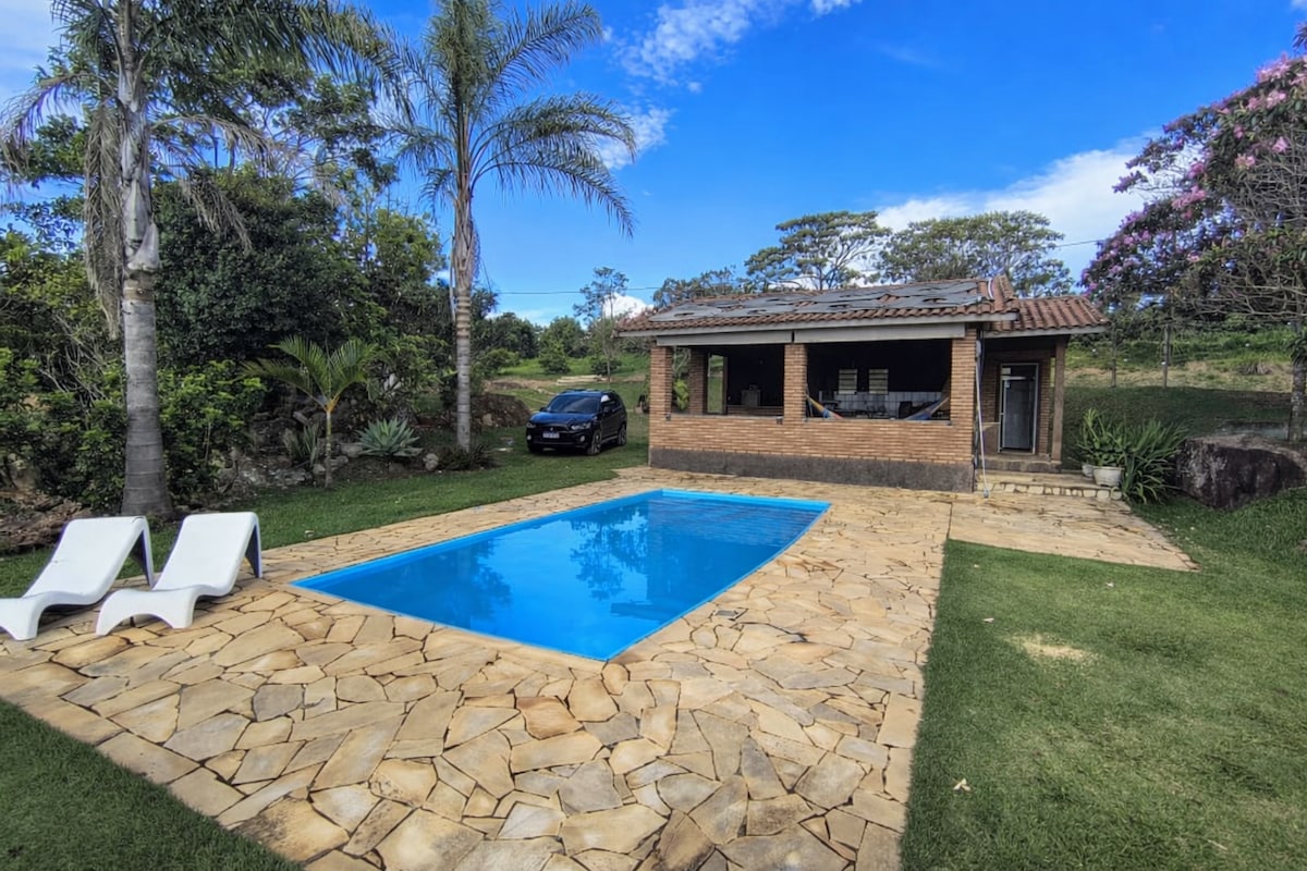 Chácara com um conforto incrível! Ideal para um final de semana com amigos e familiares. Apresenta tudo que é preciso, além de estar em uma localização incrível. 1 quarto enorme com 5 camas, churrasqueira com fogão de lenha, local para assar marshmallow, área de lazer com piscina, sala com 2 sofás, televisão e Wi-Fi