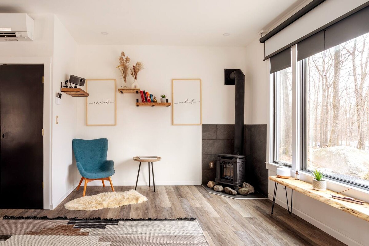 Evadează în acest refugiu modern și confortabil, unde natura te înconjoară. Adormi în bufnițe, greieri și broaște. La doar 2 minute de Rosendale și la o scurtă plimbare cu mașina până la Kingston, New Paltz și Stone Ridge, cu restaurante și trasee în apropiere. Bucură-te de un șemineu cu gaz, un colț de lectură cu vedere la vârful copacului și o terasă mare care se simte ca și cum ai fi în copaci. Spațiul privat în aer liber include o groapă de foc, toate pe un teren liniștit de 3 acri, oferind pace și liniște totală. Evadarea ta perfectă din Hudson Valley te așteaptă!