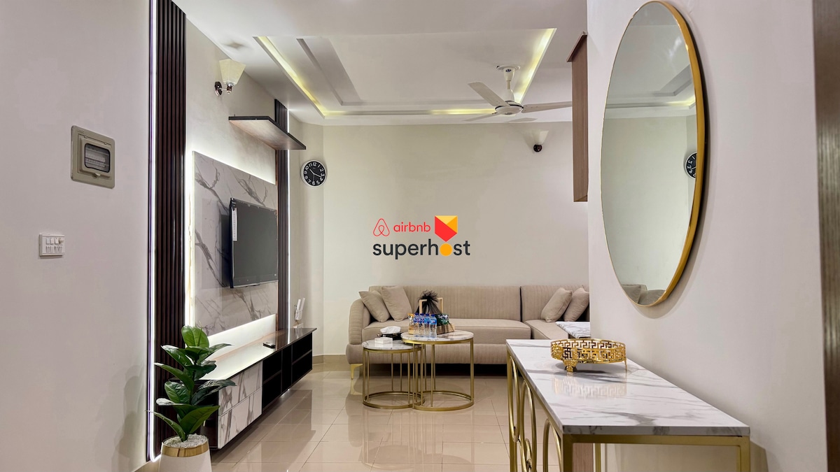 Alimentare de rezervă non-stop Skyluxe Designer Studio | Lux și confort Intră în Skyluxe, un studio cu design atent, unde stilul întâlnește caracterul practic. Bucură-te de un spațiu confortabil, dar uimitor, perfect pentru șederea ta. Relaxează-te la piscina de pe acoperiș, abur sau saună (se aplică taxe suplimentare) și ia masa la restaurantul din incintă. Situat la doar 10 minute de DHA și Bahria, la 15 minute de I-8, cu restaurante de top și magazine în apropiere. Check-in independent pentru o experiență fără probleme. Rezervă acum pentru o ședere memorabilă!
