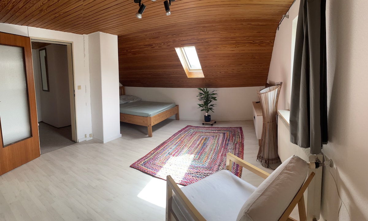 Apartament frumos cu o cameră la Burgberg Apartamentul este deosebit de popular pentru șederi private și profesionale pe termen scurt în Erlangen. Datorită locației, apartamentul este potrivit în special pentru călătorii de afaceri, turiști și vizitatori ai spitalului, la 5 minute de stația de autobuz cu conexiune bună la centru. Aproape de spitalele universitare, Siemens, Adidas și universitate. De asemenea, ideal ca punct de plecare pentru a explora Elveția Franconiană sau Nuremberg din apropiere.