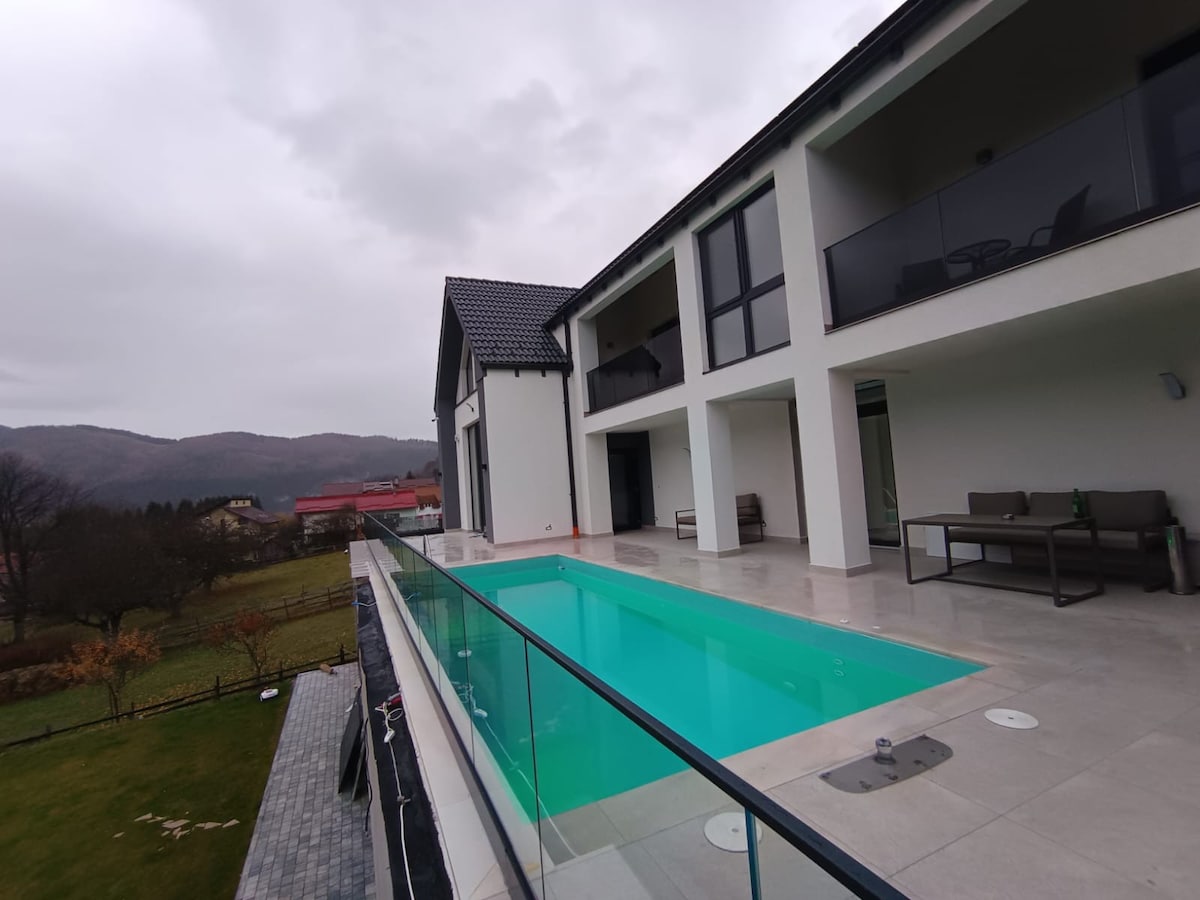 Proprietatea are 270 de metri pătrați și este dotată cu o cabană din lemn, saună, terasă acoperită, parcare privată gratuită și loc pentru grătar. Aerul curat de munte și priveliștea spre munții Bucegi fac din această moșie o adevărată oază de relaxare. La etaj sunt 4 dormitoare decorate în stil modern, cu paturi king size. Acestea au băi proprii și balcoane interconectate, perfecte pentru seri de povești cu prietenii.