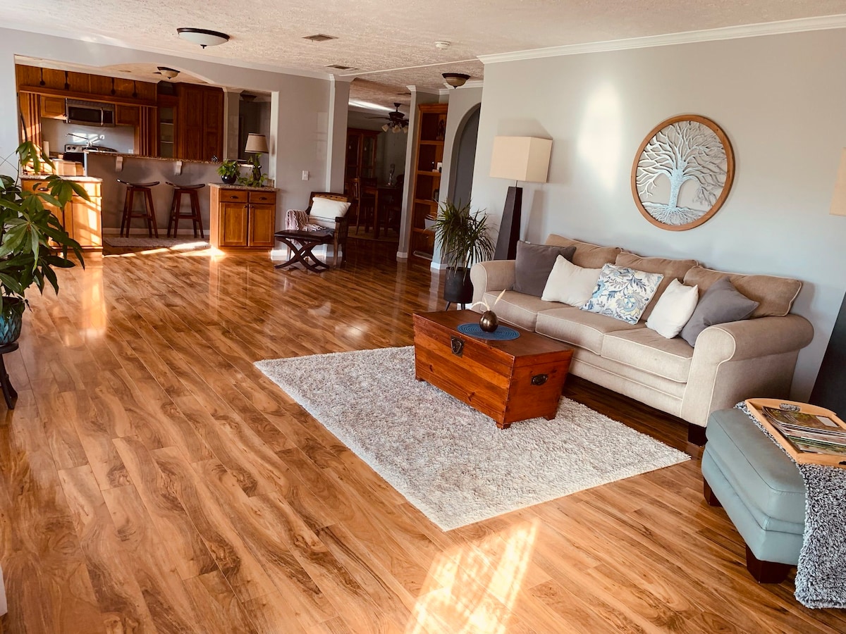 Relaxează-te cu întreaga familie în această locuință spațioasă, liniștită și actualizată! Situată chiar lângă I-10, locuința noastră oferă acces ușor pentru călători și se află la doar o scurtă plimbare de Panera, Starbucks, magazine alimentare și mai multe restaurante/magazine. Bucură-te de confortul de a avea la îndemână tot ce ai nevoie, fiind în același timp capabil să experimentezi atmosfera de țară a cartierului nostru. Locuința noastră se află la numai 25-30 de minute de plaja Pensacola/Perdido Key și la 40-45 de minute de Foley, parcul de distracții AL/OWA.