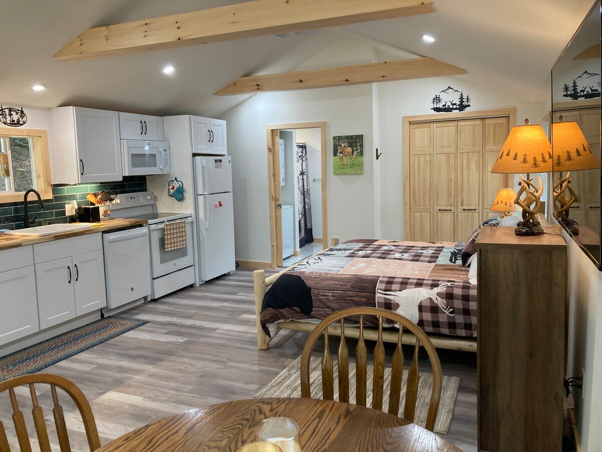 Bine ai venit la Cozy Cottage Retreat, unde căprioarele și natura sunt din belșug. Această cabană fermecătoare este perfectă pentru un refugiu de cuplu și a fost complet renovată. Zona în stil studio, găzduiește un pat king-size, baie spațioasă, spălătorie, bucătărie completă, scaune de dragoste rabatabile și aer condiționat. Smallwood este un hamlet din Bethel, NY și este situat central față de o serie de restaurante și atracții care trebuie incluse: Bethel Woods Summer Concerts, Resort World Casino, Kartrite Indoor Waterpark și Legoland.