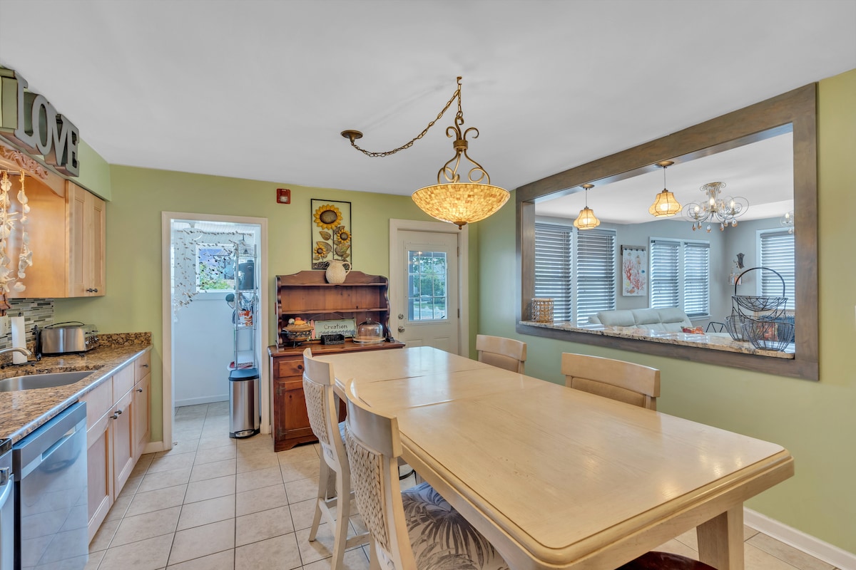 Renovarea completă a casei a fost finalizată. Bucătărie nouă, electrocasnice, pardoseală, vopsea, iluminat, mobilier. Piscină supraterană pentru vara anului 2023 Locuințele de închiriat sunt sâmbătă-sâmbătă, fără excepții Tone de parcare Huge Garage Game Room (Pool, Foosball, Air Hockey, Basketball, 3 Arcade Machines; Simpsons, Mortal Combat și Pac-Man Grătar central AC mare cu 6 arzătoare Televizor cu cablu în living de 75'' 8 insigne de plajă incluse BR 1: Rege BR 2: regină BR 3: Queen BR 4: pat dublu/twin și pat dublu/pat dublu