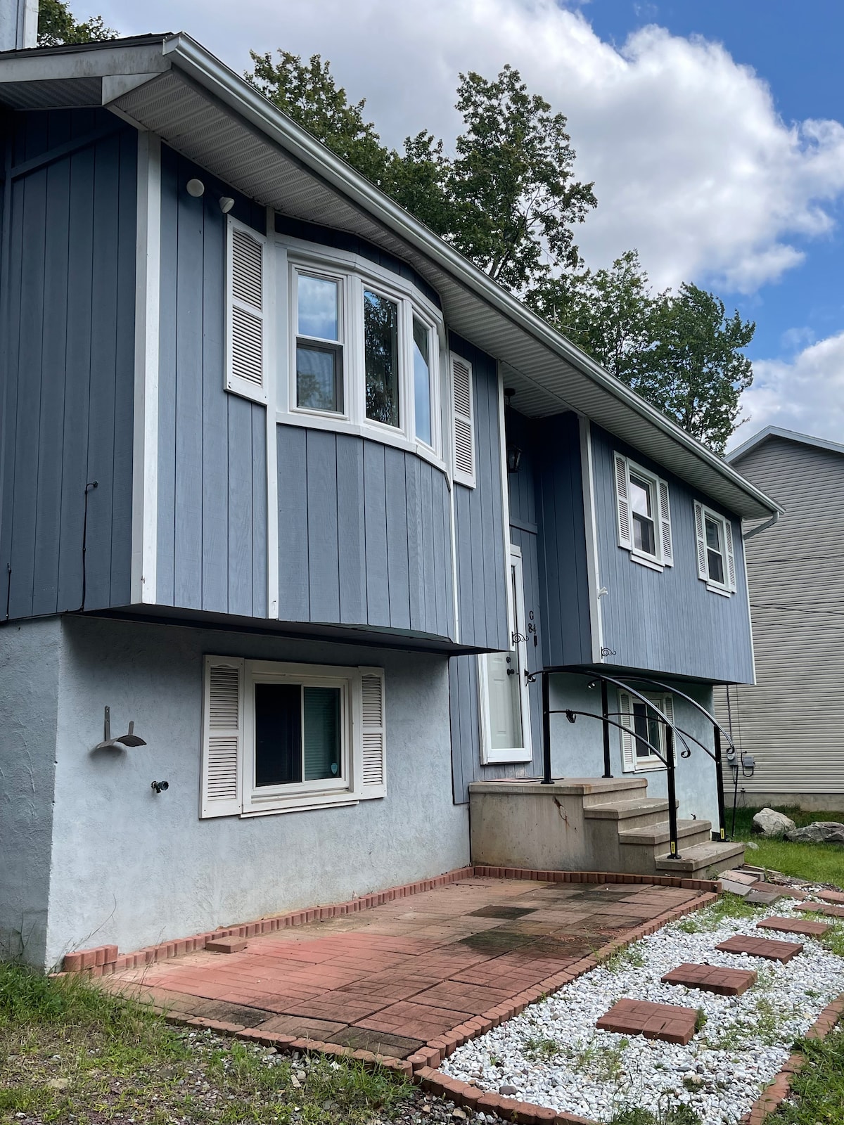 Spațiu la subsol complet refinisat. Situat la mai puțin de 20 de mile de stațiunile de schi Shawnee, Camelback și Blue Mountain, parcul Columcille Megalith. La câțiva pași de poteca Wind Gap a traseului Appalachian. Numeroase winieries și zone de drumeții în apropiere. Situat central între Stroudsburg și Easton, Universitatea East Stroudsburg, colegiul Lafayette. La 5 minute de Route 33. Există o zonă de relaxare oudoor de care să te bucuri. Wi-Fi, parcare în afara străzii. Ferestrele de deasupra solului oferă lumină naturală