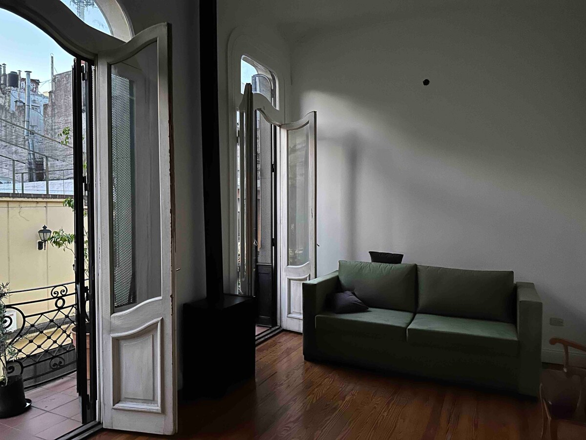 Situat în istoricul Pasaje Santamarina, aproape de inima orașului San Telmo și la care se ajunge printr-un singur zbor de scări, are o zonă de living cu șemineu și o bucătărie integrată, 2 dormitoare (unul într-un mezanin deschis, cu un birou), un centru de divertisment cu TV LCD (cu Chromecast, fără cablu), o baie (cu cabină de duș, fără cadă) și un dulap de mers pe jos. Dispune de conexiune Wi-Fi și un sistem central de aer condiționat. Foarte liniștit și plin de lumină. Acces ușor la atracțiile din Buenos Aires.