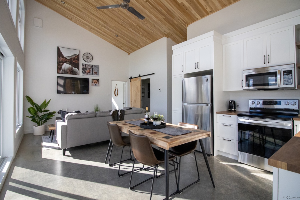 Rifugio este locul potrivit pentru a te refugia. Un refugiu de pace în mijlocul naturii, înconjurat de munți cât vezi cu ochii. Le Rifugio îți oferă libertatea de a face o legătură autentică cu natura și de a te bucura de timp de calitate singur sau cu alții. După ce intri pe ușă, ești întâmpinat într-o atmosferă caldă și confortabilă. Ferestrele mari oferă vedere magnifică la munții din jur, iar în depărtare putem vedea vârful lacului Mégantic.