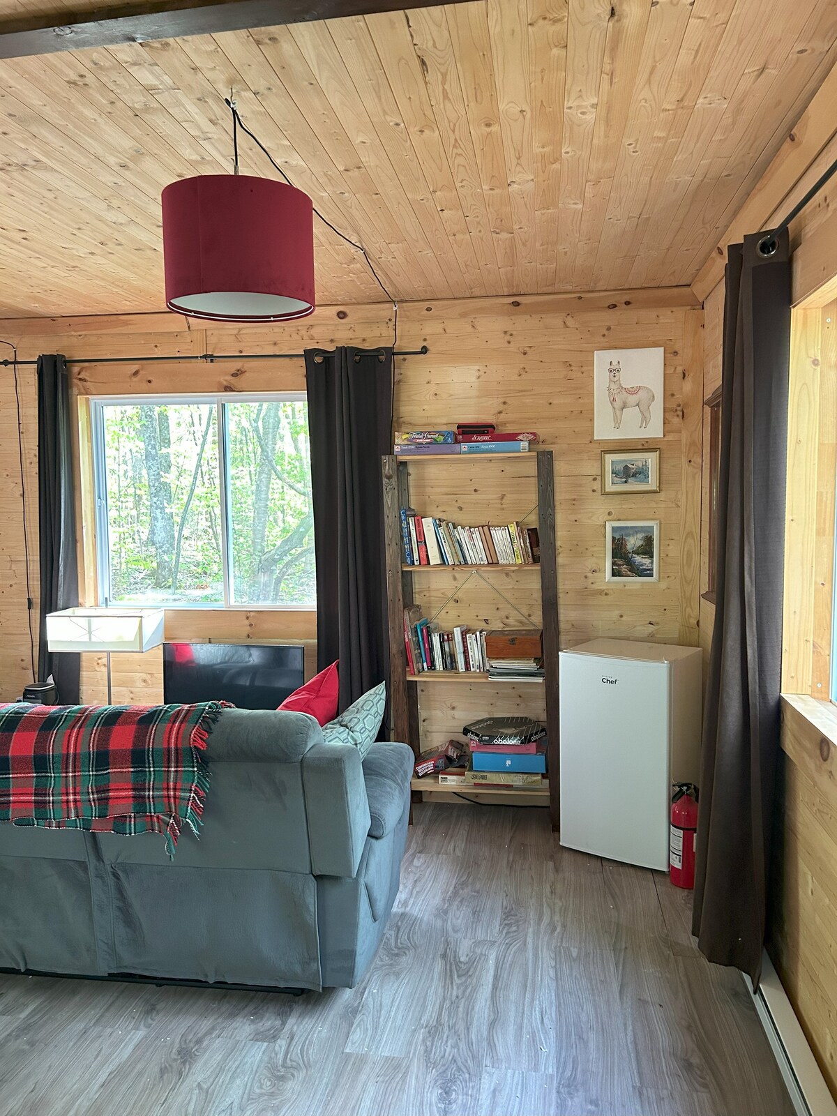 Refuge rustique unique en son genre parfait pour décrocher du quotidien. Pas de reseau cellulaire ***WI-FI haute vitesse*** Sans eau courante (nous fournissons l'eau selon vos besoins pour faire vaisselle et laver mains) avec électricité, poêle à bois ( bois fourni interieur en saison froide octobre a avril ) et toilette compost foyer extérieur : nous fournissons de la croute de cèdre pour les feux exterieurs. il est interdit d'utiliser le bois intérieur pour faire des feux extérieurs.