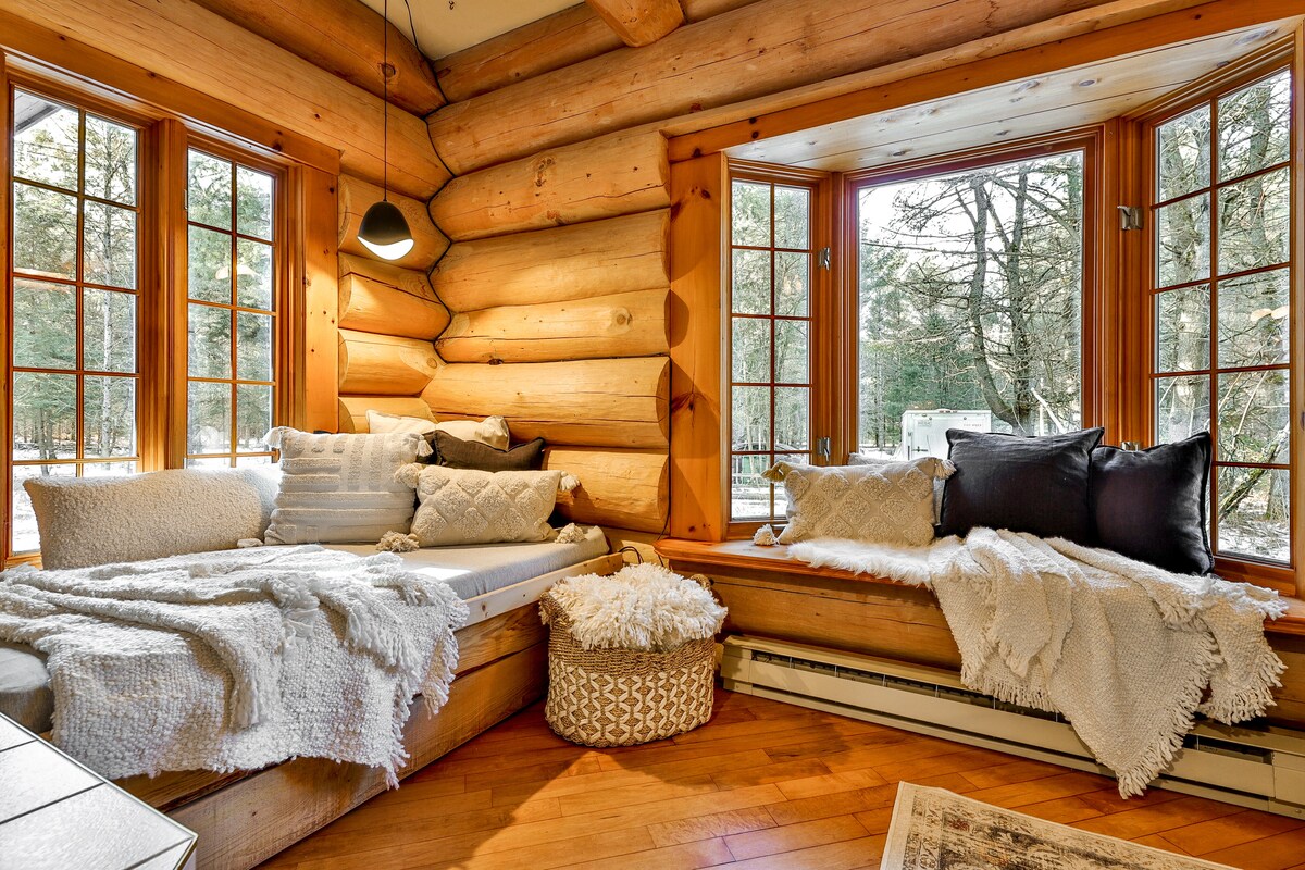 Un refugiu natural perfect în inima Laurentianului. Descoperă această locuință unică din bușteni canadiană, construită de compania locală de prestigiu Harkins. Lac liniștit cu apă limpede, direct în fața acestei pietre ascunse. Șemineu ♦ interior din lemn lângă living confortabil și TV inteligent ♦ Două dormitoare spațioase cu pat matrimonial și matrimonial Acces la lacul natural♦ privat ♦ Balcon cu grătar. Groapă de foc Intimitate♦ pură, fără vecini aproape ♦ Birou și Wi-Fi