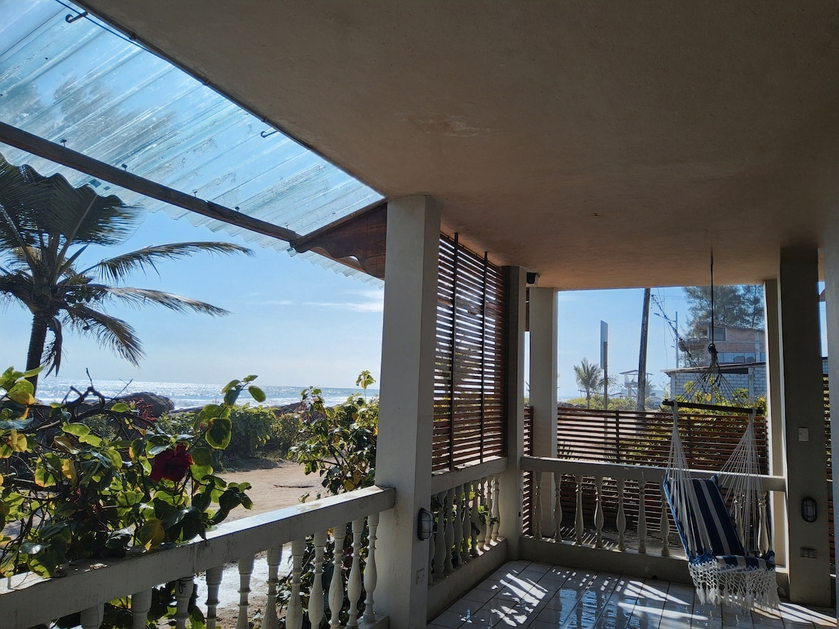 ¡Vive frente al mar! Esta hermosa mini suite se encuentra en el primer piso, y cuenta con dos niveles privados. 1er nivel: Cocina equipada, smart tv de 32”, nevera, baño con agua caliente, comedor/escritorio, wifi, y estacionamiento al exterior. 2do nivel: Balcón con mesa, hamaca, wifi y una hermosa vista a la playa y hacia las montañas. Los servicios de agua, electricidad e internet están incluidos. Servicios particulares: Clases de surf / lavandería / tours / movilidad al aeropuerto.