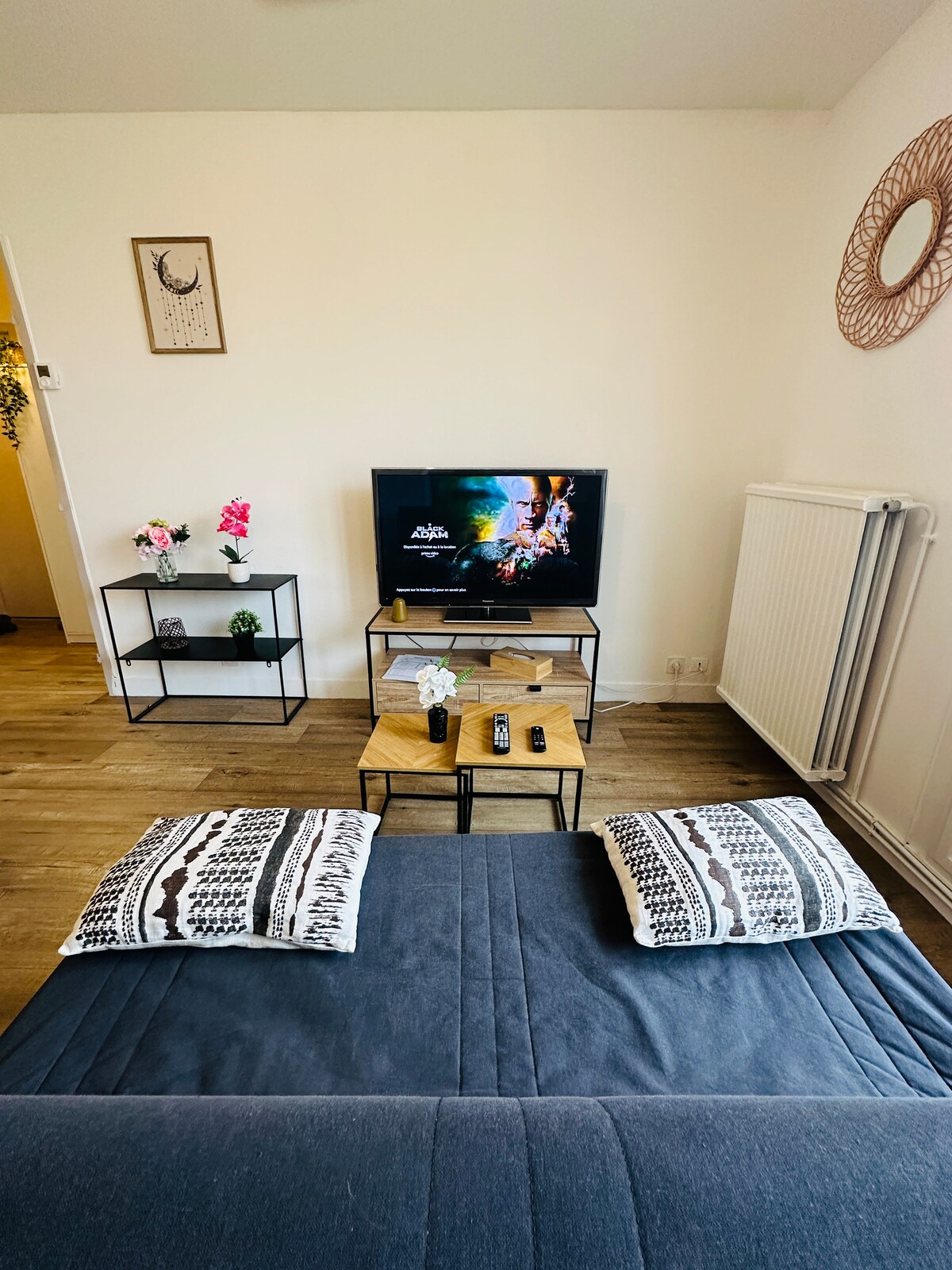 Apartament cald, situat ideal în centrul orașului Montargis, aproape de bibliotecă și clinică. Ideal pentru șederea ta, apartamentul include: o bucătărie independentă complet utilată cu zonă de luat masa, dormitor cu TV și spațiu de birou, baie cu duș și toaletă. Toate conforturile: aer condiționat reversibil (cald/rece), fier de călcat, cafetieră Nespresso, mașină de spălat vase. Pentru siguranța ta, zonele comune ale clădirii sunt sub supraveghere video.