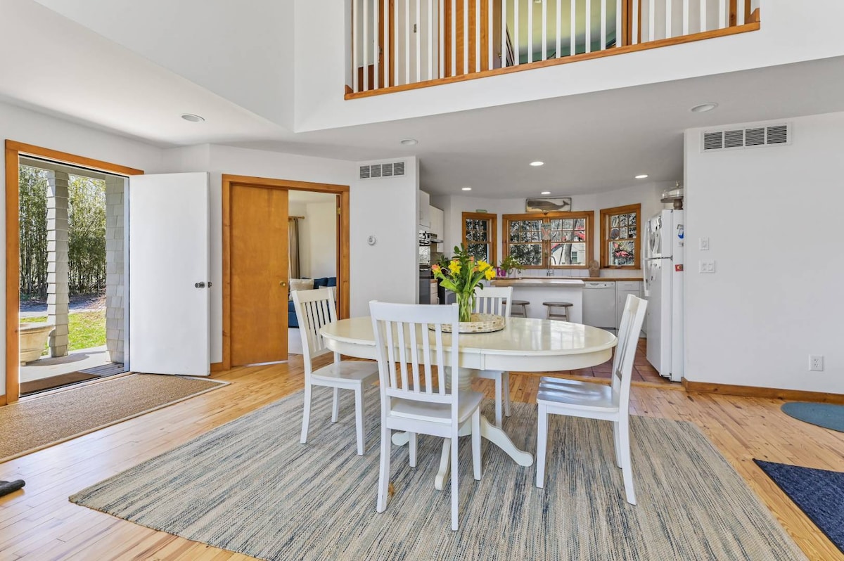 Casa se află pe un lot de 0,35 acri, cu o mulțime de spațiu de luat masa în aer liber și o zonă imensă de iarbă, cu un șemineu și un hamac. Există 2 etaje. Primul etaj are un plan al etajului deschis, cu o bucătărie conectată, sufragerie și sufragerie. Bucătăria este bine echipată cu mașină de spălat vase, aragaz electric/cuptor, frigider și cafenea. Există, de asemenea, un dormitor la etajul 1 cu 2 paturi de dimensiuni normale. Etajul 2 are 3 dormitoare și o zonă de mansardă/bârlog. Cele trei dormitoare de la acest etaj au 1 pat matrimonial matrimonial+futon, 2 paturi matrimoniale și, respectiv, 2 paturi twin (care pot fi făcute împreună pentru a forma un rege la cerere). Toate camerele au AC. Există 2 băi complete (câte una la fiecare etaj) și o mașină de spălat/uscător. Oaspeții au acces la întreaga casă și la zona curții din spate. Îți respectăm confidențialitatea, dar suntem accesibili dacă ai întrebări sau ai nevoie de ceva pe durata șederii. Greenport a fost votat unul dintre cele mai frumoase orașe din America de către revista Forbes. Are o cultură vibrantă și relaxantă, oferind acces la plaje, degustare de vinuri și restaurante minunate. Stațiile Shelter Island Ferry și Hampton Jitney sunt în apropiere. Suntem la doar câteva străzi distanță de stația Hampton Jitney, stația LIRR și feribotul Shelter Island. Nu este nevoie de mașină - poți merge pe jos oriunde ai nevoie!