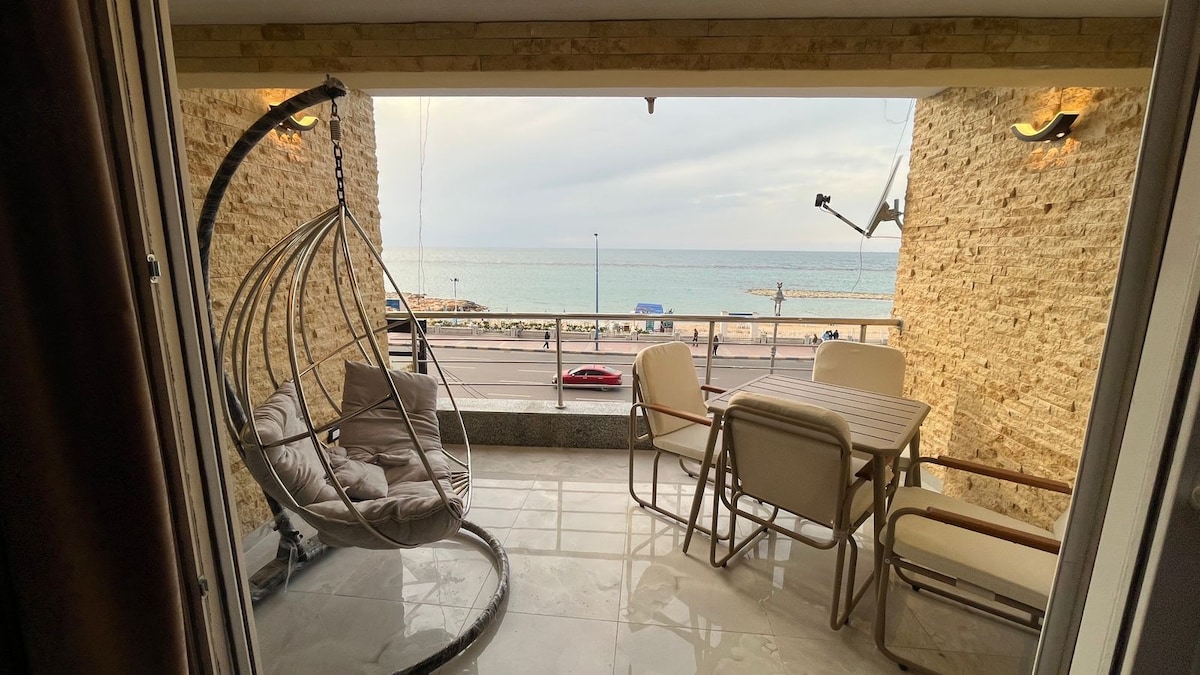 Wake up to the sight and cool breeze of the Mediterranean. This unique luxurious coastal apartment with it's boho chic laid-back style, is all about comfort. Enjoy the majestic open view of the sea &the Montaza royal gardens. Our unique spacious place has all the amenities you are looking for, restaurants and cafes are within a walking distance &affordable beach access. We are offering you our private place to enjoy during the time we are forced to leave it, hoping you like it as much as we do.