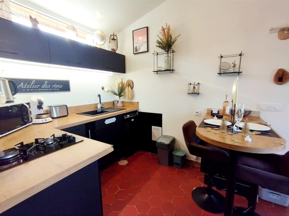 Lasă-te captivat de inima podgoriilor din Saint-Émilion (patrimoniu mondial UNESCO) în această casă renovată din podgorie, pentru 4 persoane. Bucură-te de priveliști uimitoare asupra podgoriilor Grands Crus Classés de pe terasa ta privată. Combinând farmecul lumii vechi cu confortul modern, este refugiul perfect pentru explorarea zonei locale. Parcare privată gratuită, aer condiționat și Wi-Fi de mare viteză.