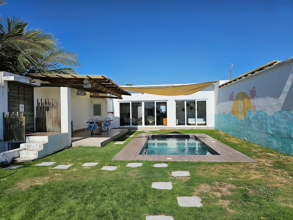 Evadează într-o casă romantică pe plajă, cu acces privat la mare și o piscină exclusivistă. Zona socială, care combină un living cu ventilatoare de tavan și TV, zona de luat masa și bucătăria de bază cu aragaz electric, se deschide spre aer liber, creând o ambianță tropicală perfectă. Chiar în fața acestei zone se află piscina acoperită și grădina tropicală. Relaxează-te în dormitor cu aer condiționat. Wi-Fi este disponibil în întreaga casă. Ideal pentru cuplurile care caută intimitate și pace lângă plajă.