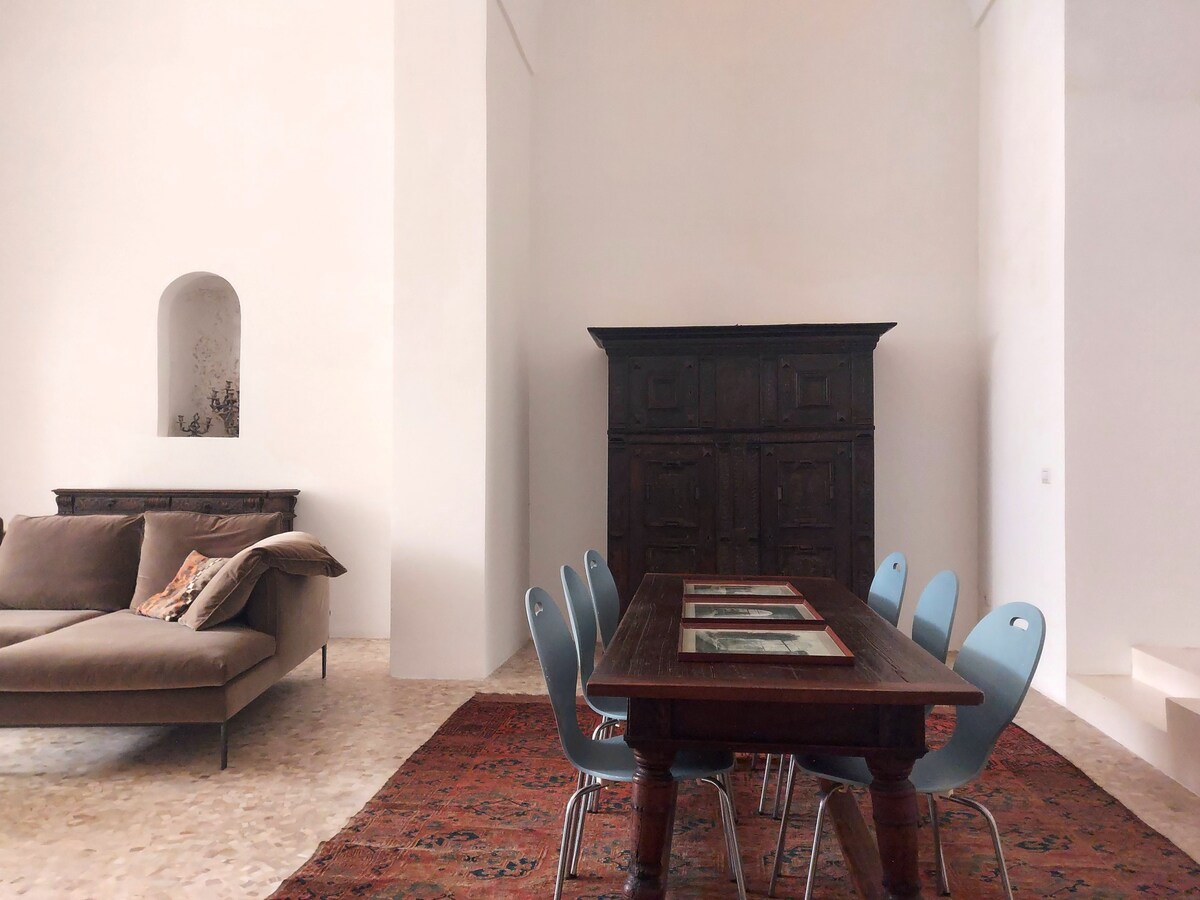 Apartament elegant într-o capelă din secolul al XVI-lea, situată ideal pentru a experimenta ambele coaste ale Salento, din adorabilul oraș istoric Alessano. Spațiul în stil loft are tavane înalte de 6 metri și amestecă antichitățile cu luxul contemporan. Te rugăm să reții că această suită nu are facilități de bucătărie. Centrul istoric al orașului Alessano datează din epoca de aur a orașului comercial din Renaștere. Are o atmosferă ușoară, bogată în baruri, cafenele și evenimente culturale, inclusiv festivalul internațional de muzică Muse Salentine.