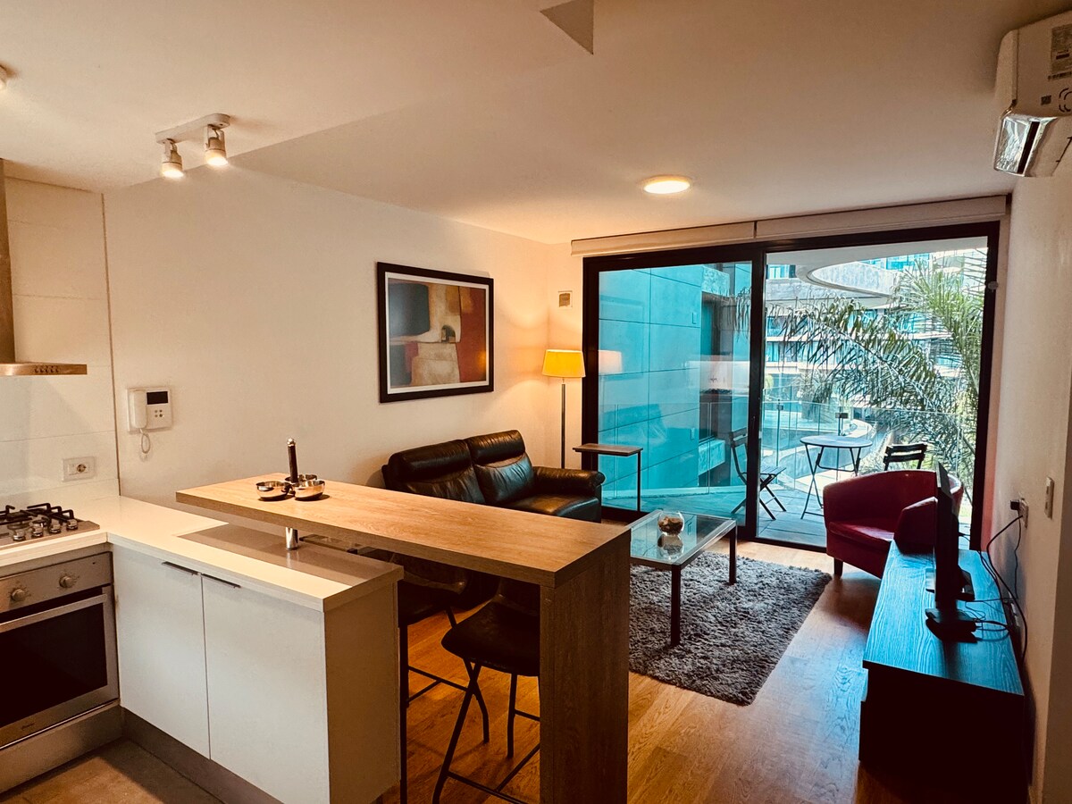 Enjoy your stay at this beautifull studio apartment, suited in a brand new building that is amazingly located in the plain heart of Pocitos, equipped with top of the line amenities, Pool, Sauna, Gym, etc. Barely 3 blocks away from World Trade Center, Montevideo Shopping Center, Pocitos Boardwalk and also next to Montevideo City sign. Spoil yourself with amenities in which anyone can have fun. Enjoy a stylish experience at this centrally-located place and discover a new way to live Montevideo.