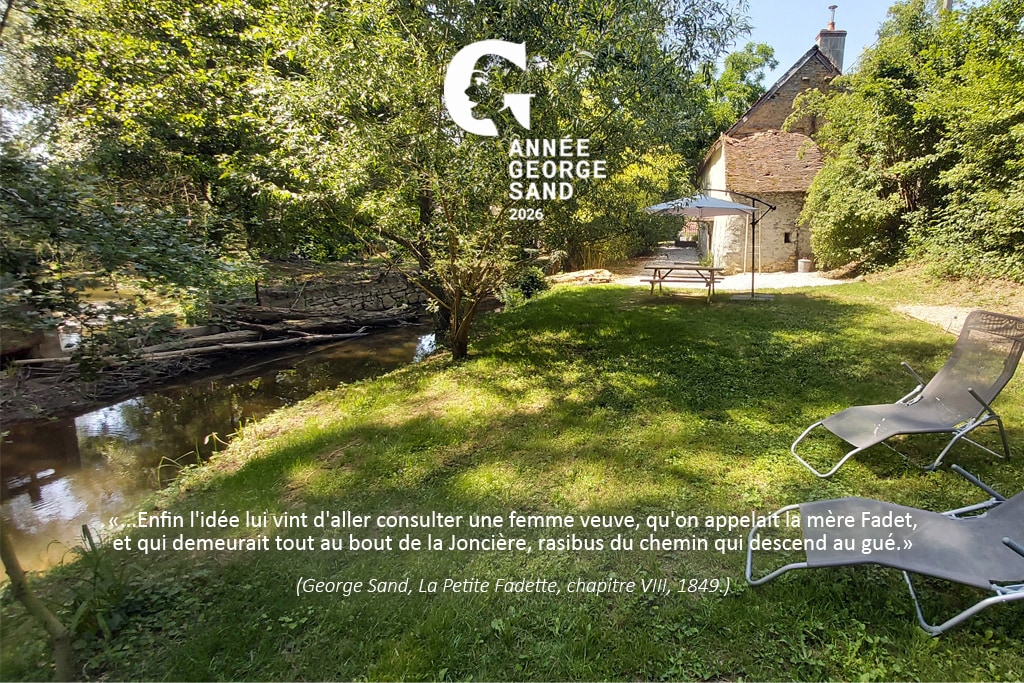 Situat în NOHANT, - la 5 minute de capelele romanice și de castelele medievale, dar și - la 5 minute de facilitățile oferite de orașul La CHATRE, NOUL BÂRLOG AL MORII are particularitatea de a nu avea uși la poteca pe care le lua NISIPUL George și faimoșii săi prieteni în căutarea vindecării pe malurile râului. Odată o clădire exterioară a morii, casa Berrichonne din secolul al XVIII-lea reamenajată în modul „21”, scăldată într-un cadru verde strălucitor, mărginită de barjă și INDRE.