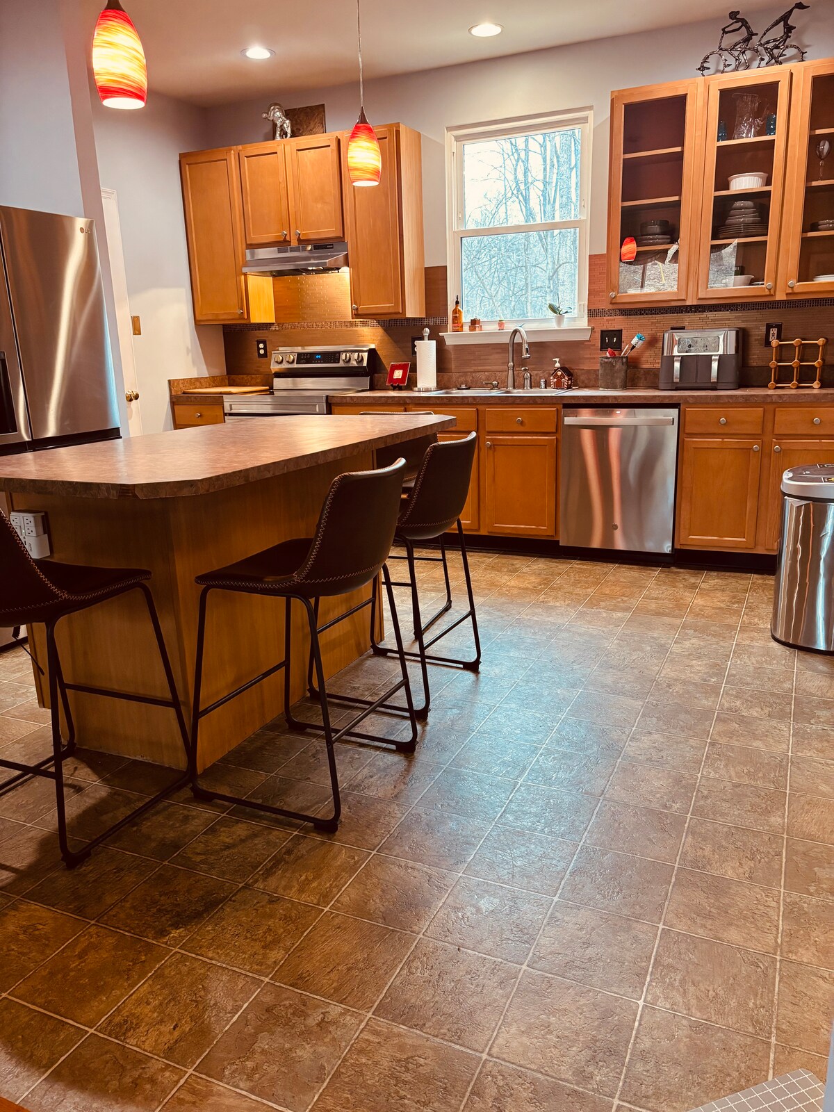 Bucură-te de liniștea paradisului nostru luxos, cuibărit în mijlocul verdeturilor luxuriante din Germantown, Maryland. Oferind confort pentru până la 6 oaspeți, această splendoare cu 3 dormitoare este dotată cu o bucătărie complet aprovizionată, spațiu de birou, home cinema și sală de jocuri, dotată cu masă de biliard. Cu o multitudine de atracții locale în apropiere și cu sezonul festiv chiar după colț, locuința noastră oferă o vacanță ideală pentru familii, iubitori de natură și cei care caută o evadare din oraș, precum și o experiență de cazare de lux.