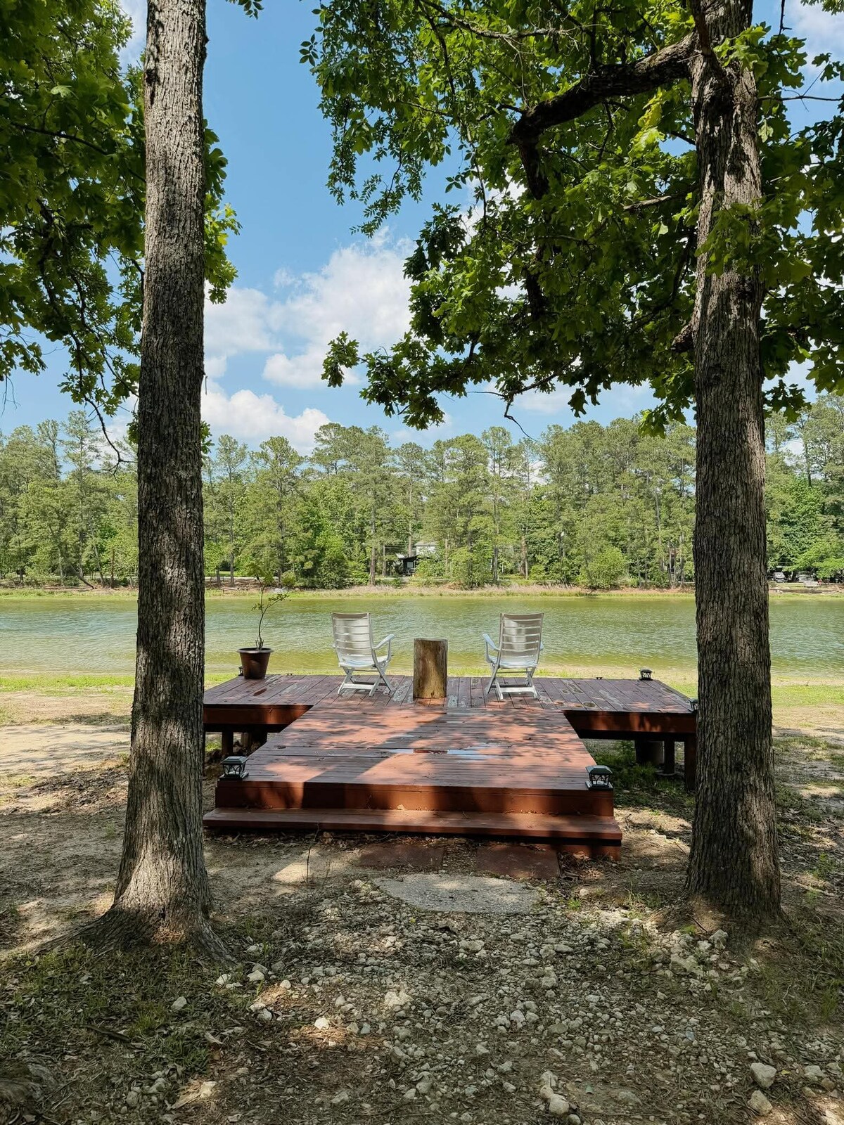 This is a great place to relax and unwind while enjoying the beautiful sunset and sunrise at the lake in Sam Houston National Forest with the geese, the ducks, and the birds, and keeping an eye out for the deer enjoying the lake. Once in a while an eagle and a hawk will stop by. There's plenty of yard for your furbabies to enjoy.