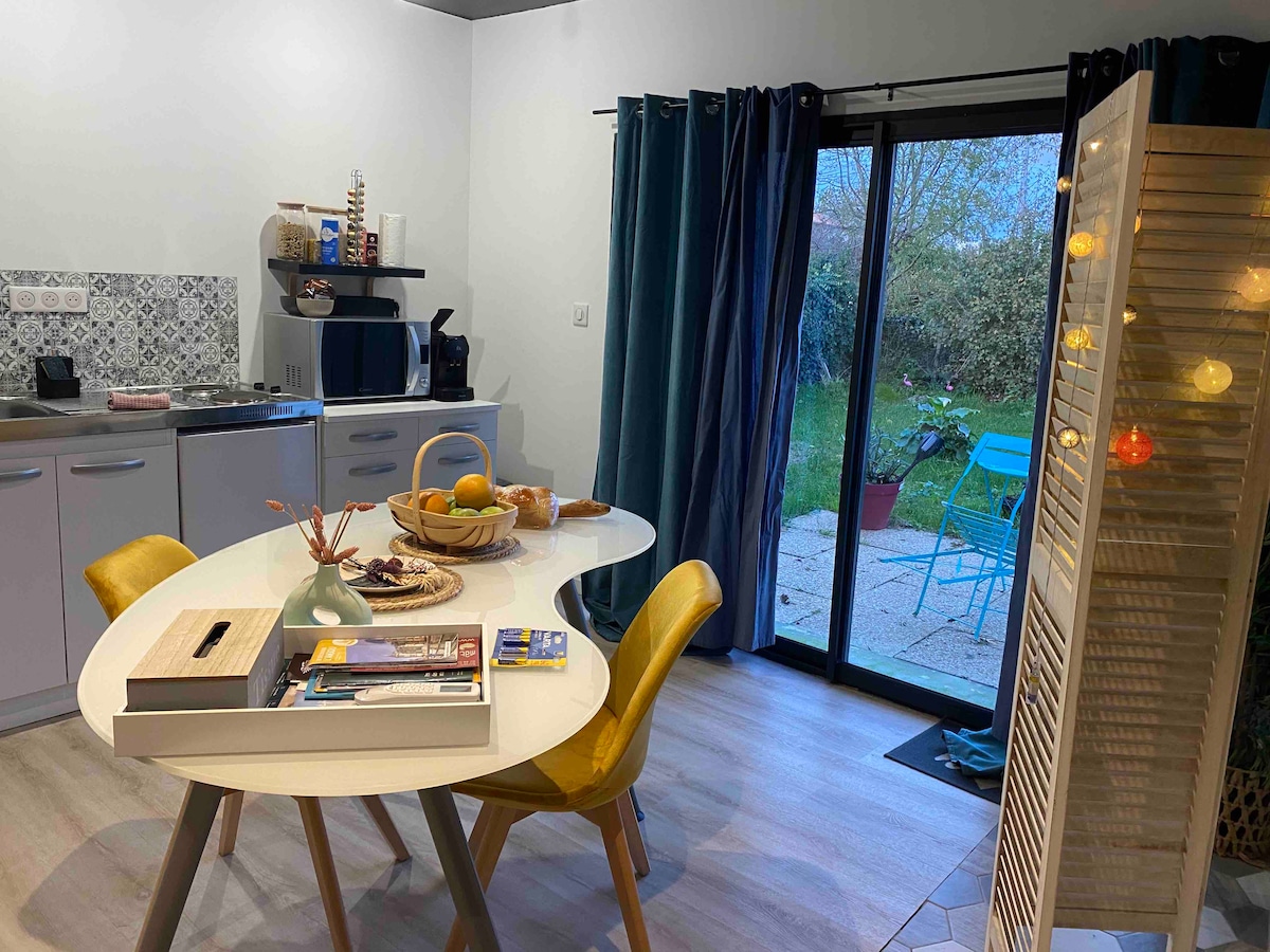 Bine ai venit în apartamentul „Garden Side” de 42 m2. Vei găsi un decor în stil industrial cu bucătărie deschisă. Camera este în stil „junglă”, cu un pat de 160. Acest apartament frumos se află la 5 minute de mers pe jos de centrul orașului Ancenis și de malurile Loarei. Parcarea gratuită este în fața clădirii mici. Un loc minunat pentru a face bagaje pentru un stagiu de practică sau instruire. Totul este furnizat (lenjerie de pat, prosoape ).