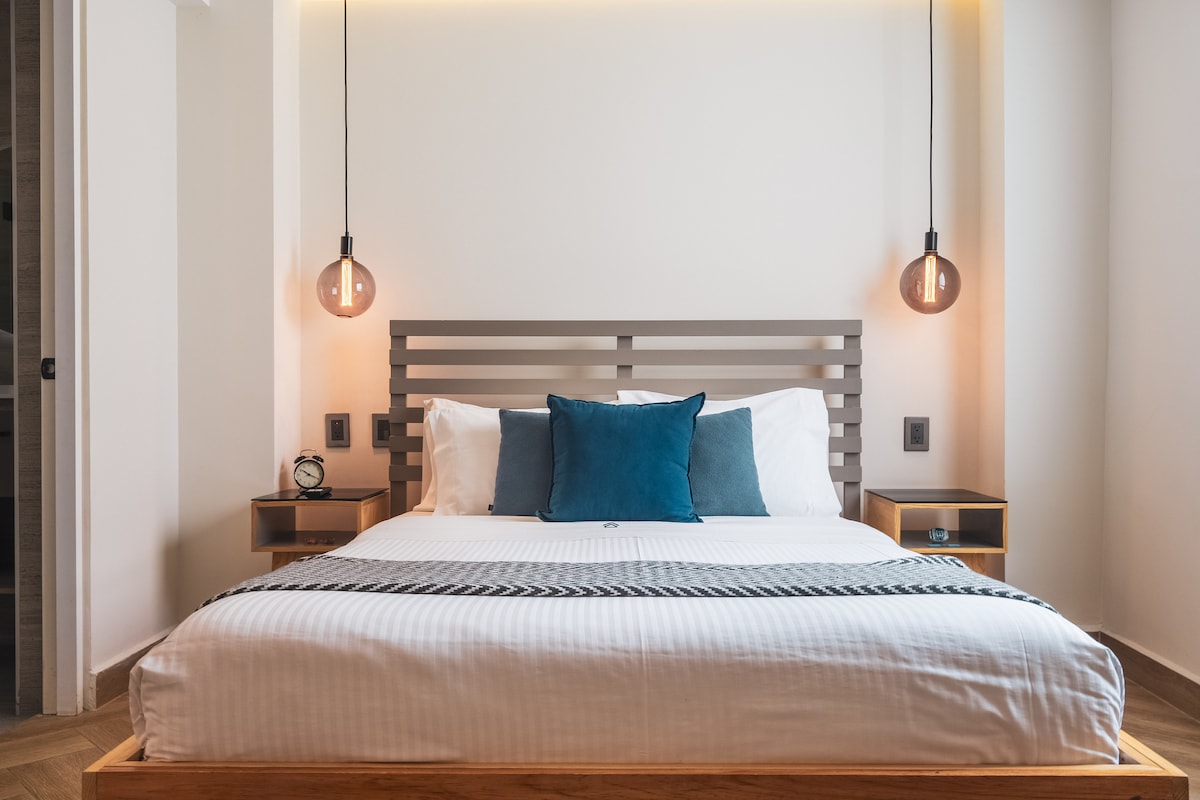 Ești pe cale să descoperi următoarea ta ședere! Suntem încântați să îți urăm bun venit în apartamentele noastre. Această clădire nu se află numai într-o locație excelentă, ci spune și o poveste care sărbătorește arta și cultura mexicană contemporană. De la piese Talavera lucrate manual în Puebla la citate emblematice ale unor creatori mexicani renumiți, cum ar fi Octavio Paz și Alejandro González Iñárritu, fiecare colț este conceput pentru a te inspira. În plus, te vei bucura de una dintre cele mai bune priveliști din oraș.