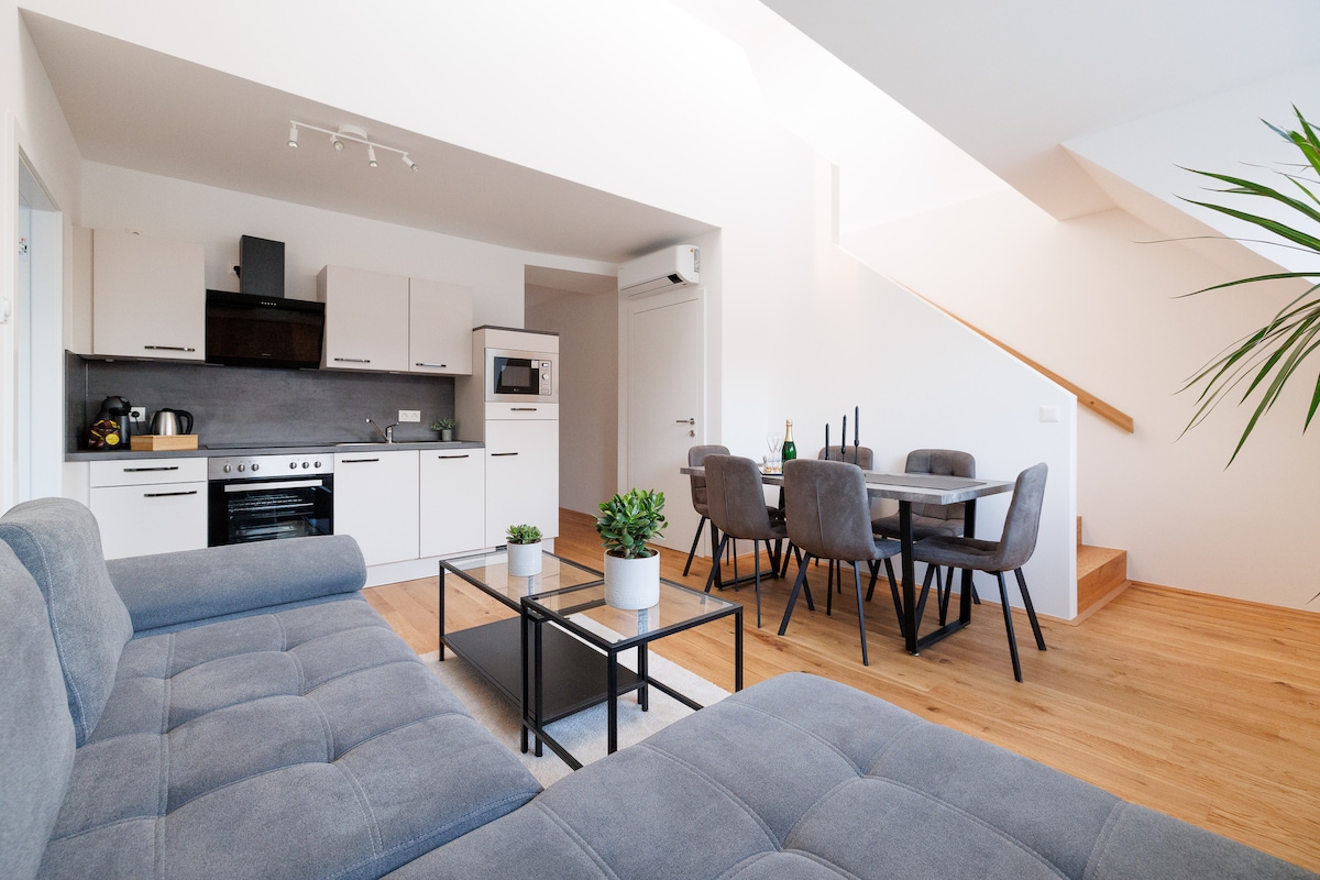 Brew an Italian coffee in the morning before heading out onto the balcony to plan the day’s sightseeing. This apartment has a sophisticated design with exposed cream brickwork, chic furnishings, and a statement mirror. This apartment is just a few minutes walk from Stephan’s Dome, the charming Danube Canal, Vienna’s old city, Prater amusement park, and the train station. It’s also very well connected to public transport.