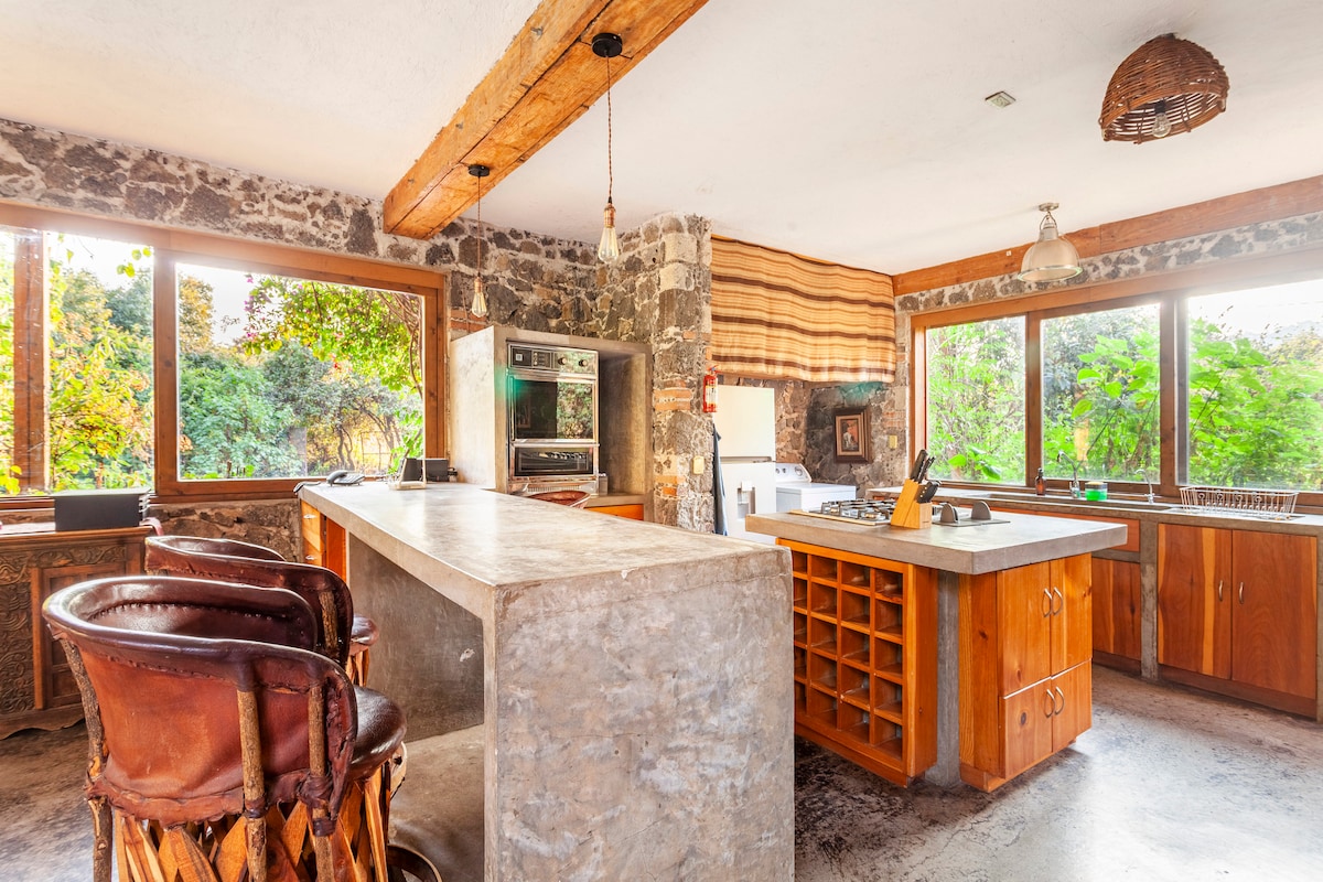 Casa Aluna is built in the heart of the mountain on a big compound with 2 independent villas. It is a place to enjoy the surrounding nature and disconnect from the city. Amazing views of the sunset and Tepoztlan mountains. You can enjoy nature walks nearby and visit local restaurants for a culinary experience, we are located 15 minutes from downtown Tepoztlan and Mexico City (80 minutes).