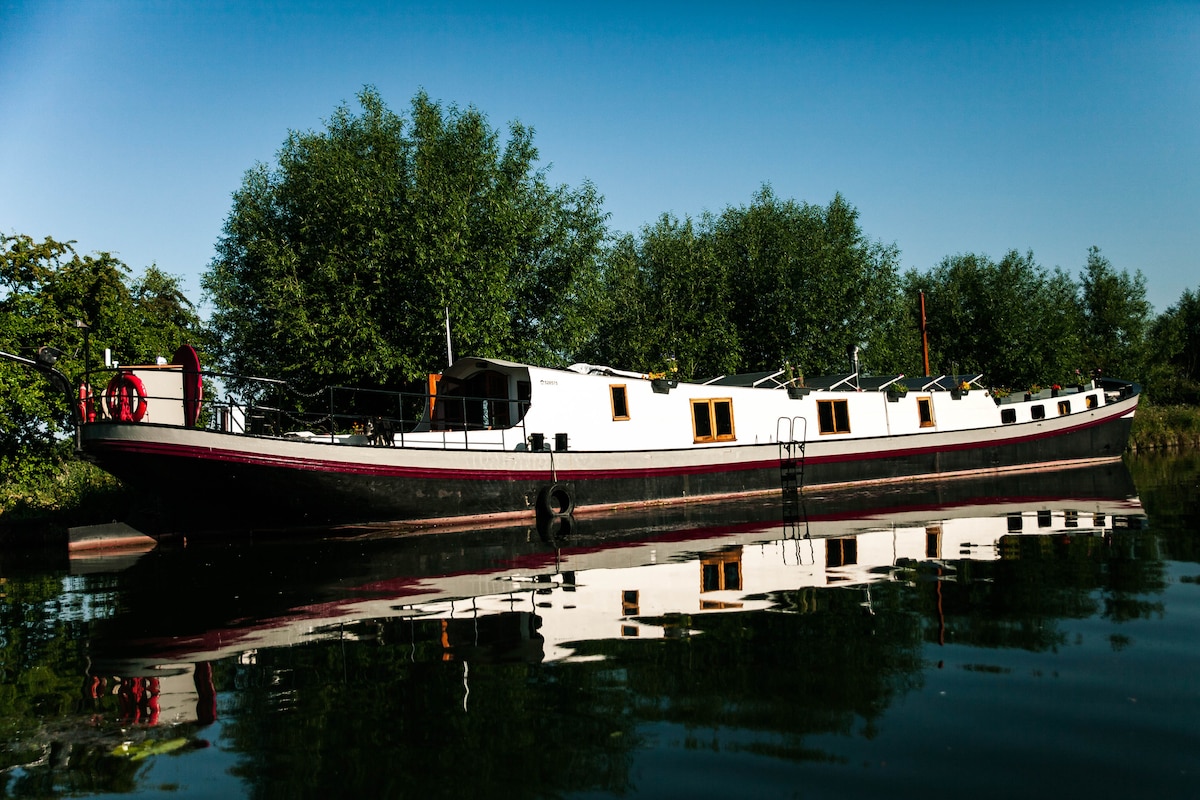 Barjă olandeză uimitoare de 100 ft pe Canalul Liniștit