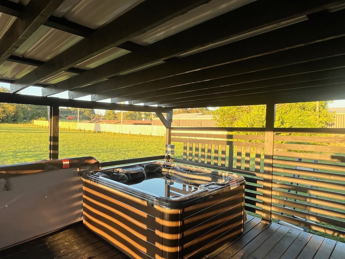 Evadează într-o oază modernă de hamac de lux: cu hamace confortabile interioare și exterioare, paturi din spumă cu memorie cu perne MyPillow pentru confort suprem și prosoape MyPillow care îmbunătățesc băile spa cu dușuri cu efect de ploaie și jeturi de corp. Aventura te așteaptă cu un traseu privat în Pădurea Națională Daniel Boone, o cadă cu hidromasaj și o masă de biliard. Acest spațiu nu este doar o ședere, ci o experiență, concepută pentru cei care caută lux, confort și o notă de aventură. Nu este potrivit pentru copii.
