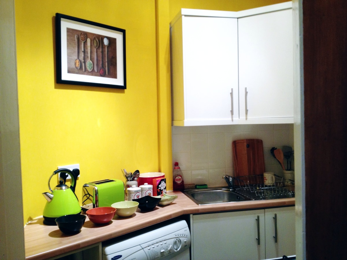 Garsonieră centrală situată în grădina retrasă a unei vile victoriene. Spațiul este în întregime al tău pe tot parcursul șederii tale și este echipat cu duș, TV cu ecran plat, cuptor/cuptor cu microunde, prăjitor de pâine, fierbător de apă și frigider. Te rugăm să reții că NU există PLITĂ, dar studioul este la câteva minute distanță de numeroasele buticuri, baruri,restaurante și cafenele la modă din Bruntsfield. Poți ajunge pe jos în centrul orașului în 20 de minute și există o stație de autobuz la capătul străzii, cu un serviciu frecvent de autobuz.